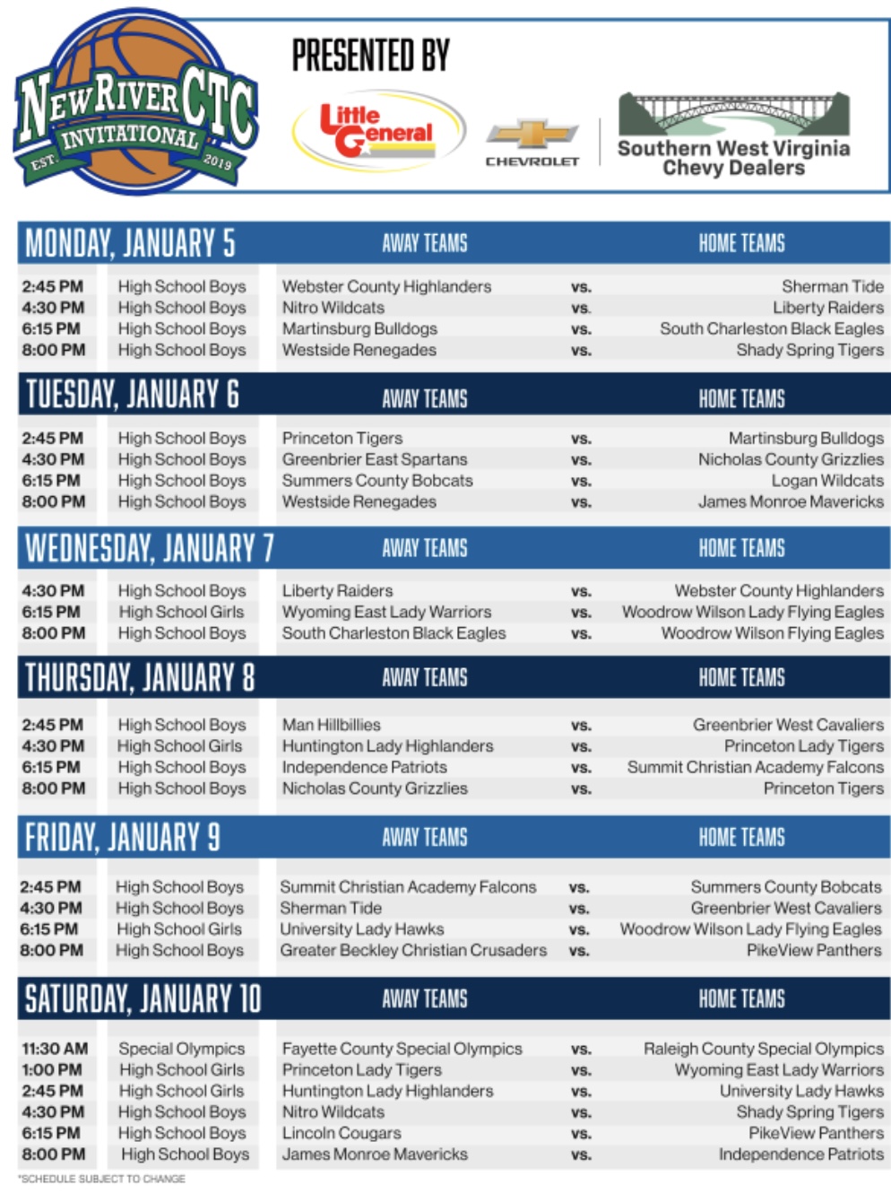 RALEIGH COUNTY, WV (LOOTPRESS) – New River Community and Technical College will host the 8th Annual New River CTC Invitational, a multi-day high school basketball tournament, from January 5 through January 10 at the Beckley-Raleigh County Convention Center.