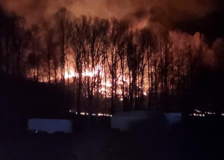 Engine 21 responded along with Tanker 22. Summersville units arrived on scene to discover a large fire being fueled by tires that had spread to the surrounding woods. Chief Snodgress immediately requested back up. Every department in Nicholas county provided a tanker and manpower to contain the fire along with several units from Fayette County.
