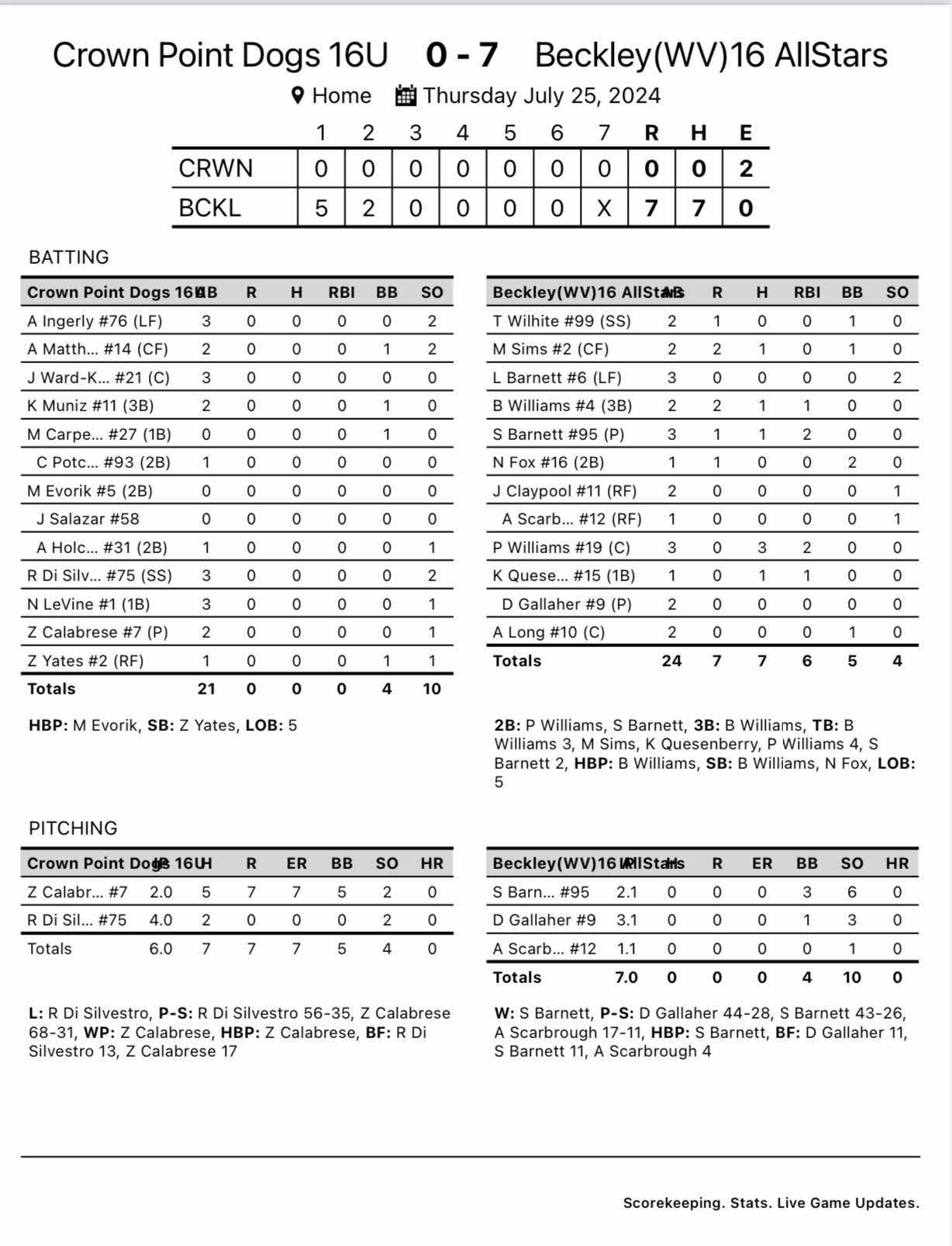 Thursday afternoon the Crown Point All-Stars battled Beckley in two different states with the same result.
