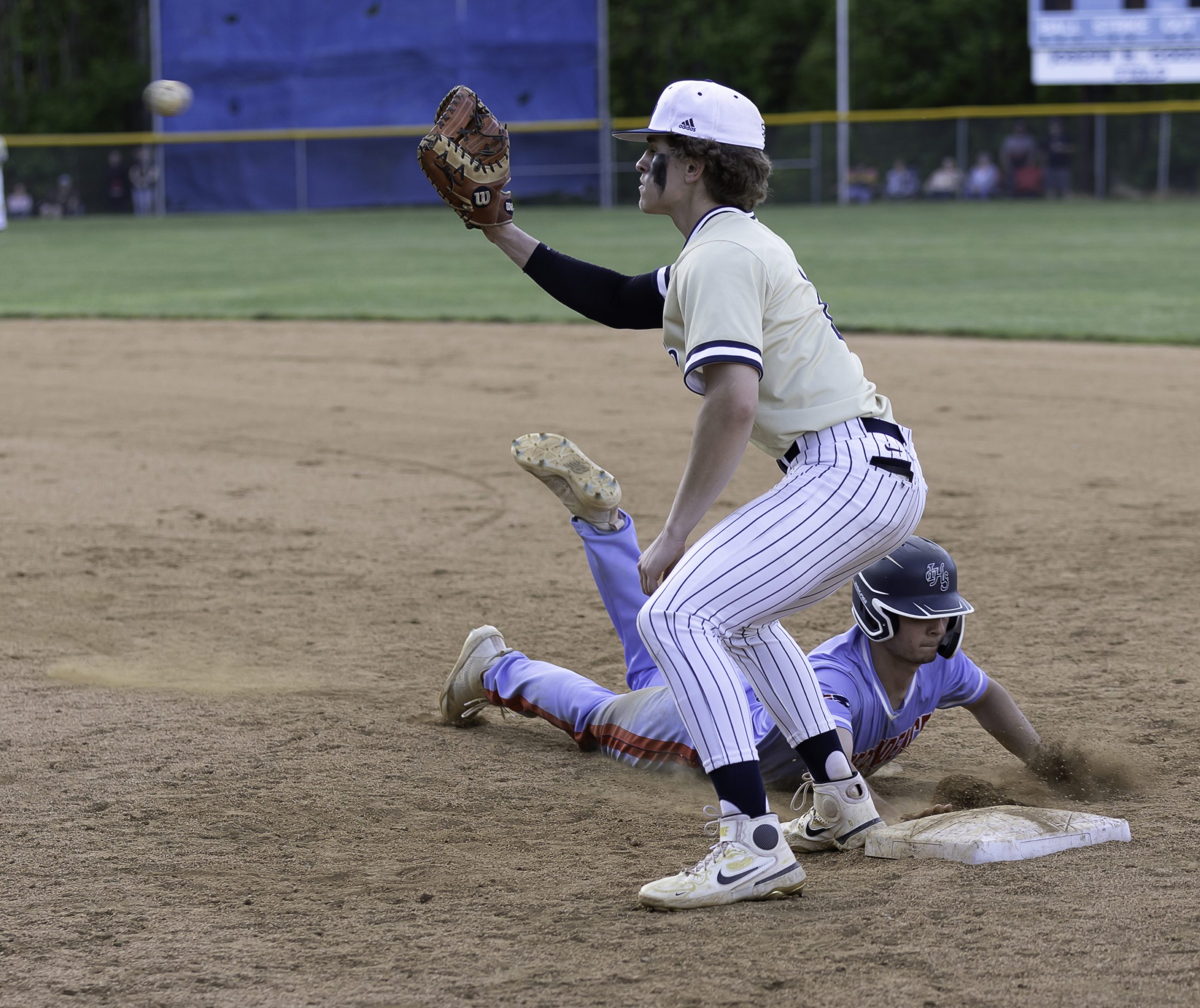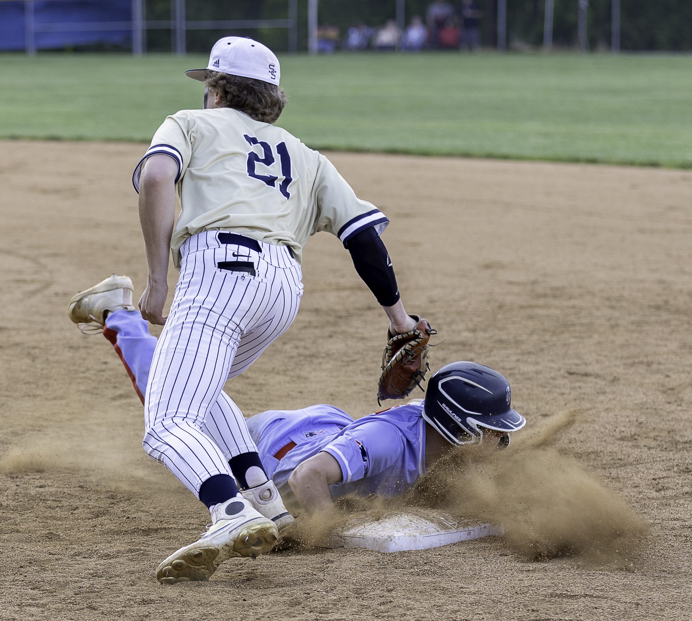 Meanwhile the Tigers’ search for timely hits continuously came up empty. Tanner Sipes, who went the distance for the Patriots, worked out of every jam as he allowed seven base runners to reach through the first three frames but left unscathed each time.