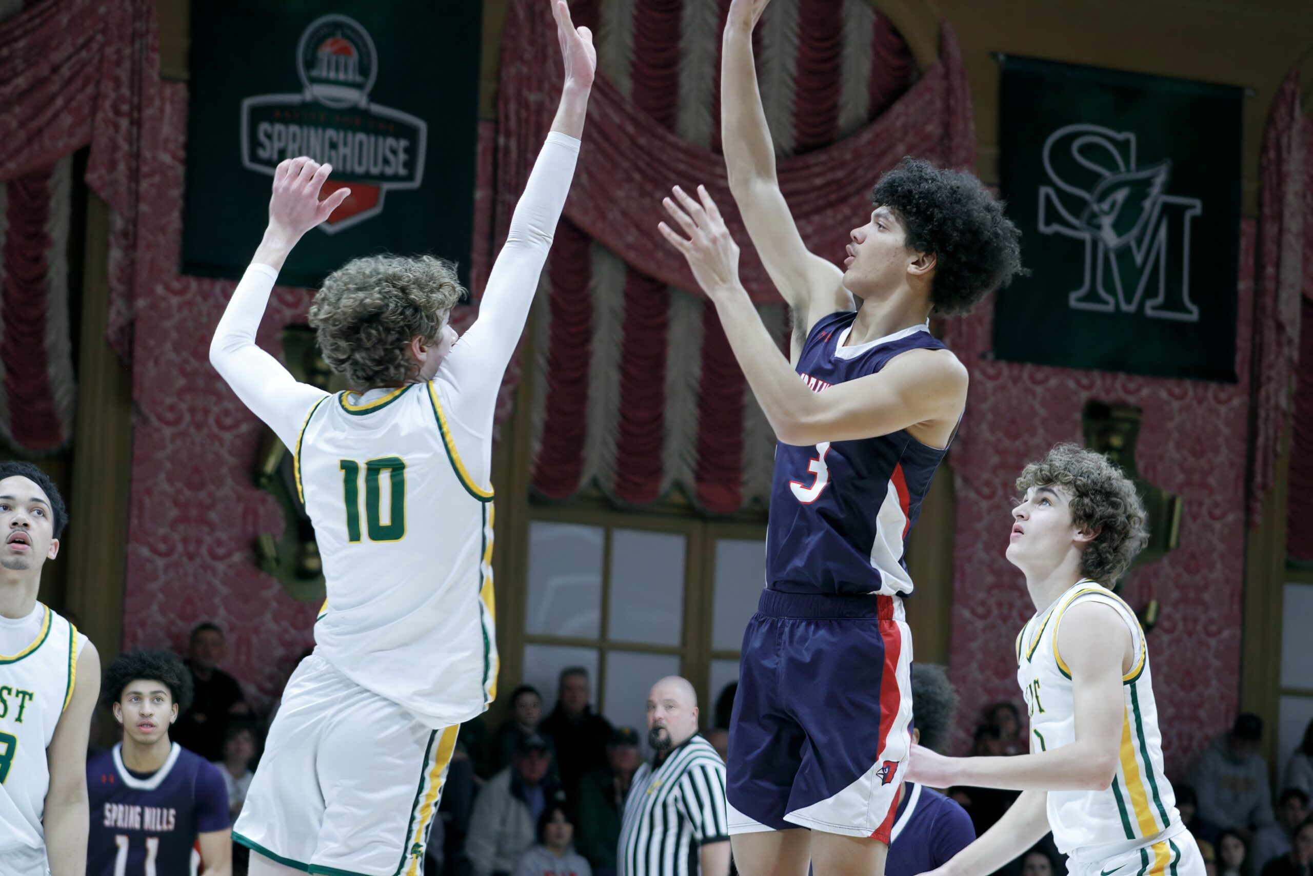 Caleb Thomas led Spring Mills with 16 points and Xavier Anderson scored 13. Nate Dixon had 12 Â for the Spartans and Brody Hamric scored seven.