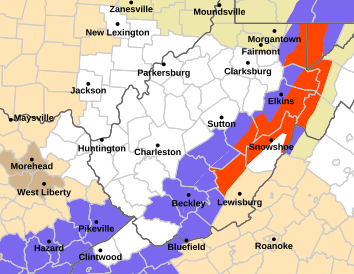 In addition to the blizzard conditions in the highlands, a Winter Weather Advisory is in effect from 3 p.m. Wednesday to 10 a.m. Thursday for portions of northeast, southeast, and southern West Virginia.