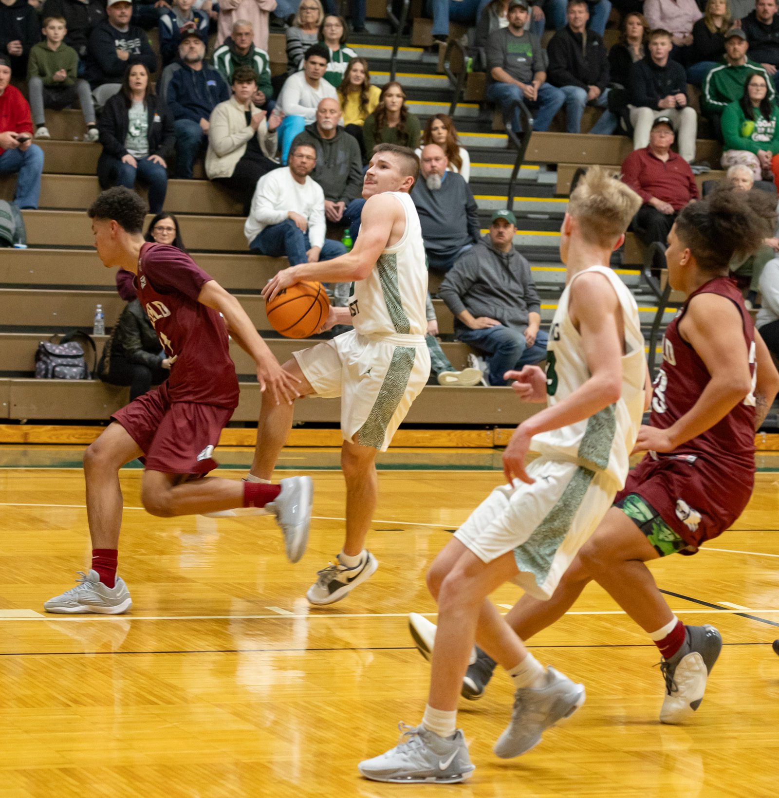 A Euro-step through the lane by sophomore Jase Smith started the run which was followed by a steal and a slam from Kam’Ron Gore.