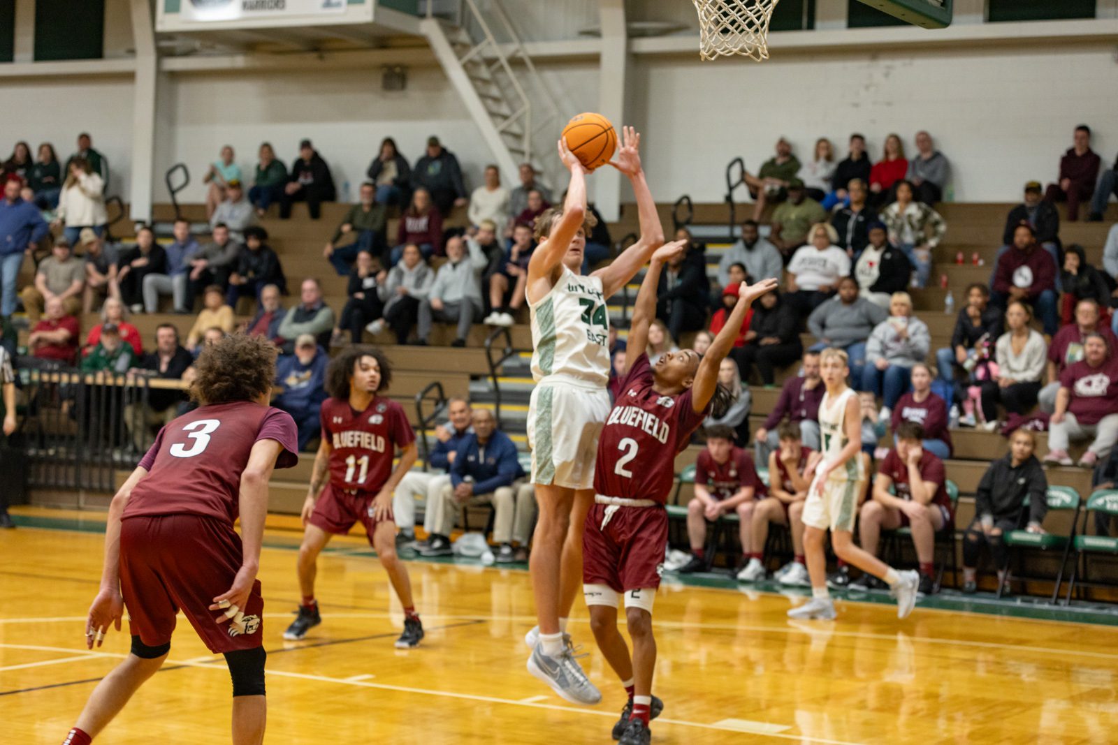 Bluefield put the game to bed by running off 17 straight points, capped by an alley-oop dunk from E.J. Washington to Hairston.