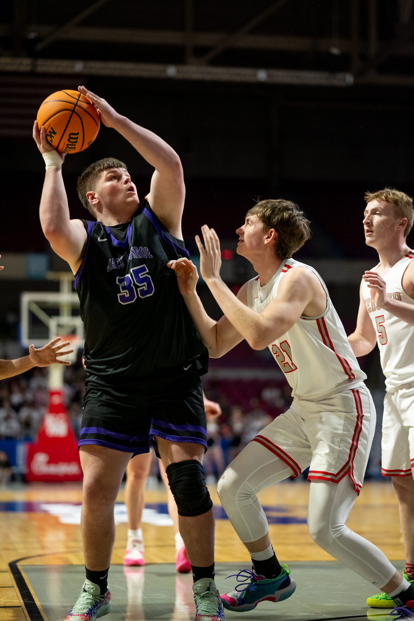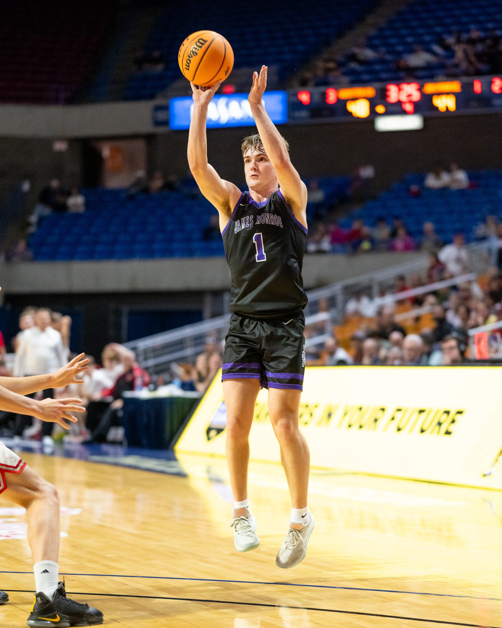 A pair of 3-pointers from Layton Dowdy and a score from Ryan Mann helped pull James Monroe within two points midway through the second period before the Highlanders heated up once again.