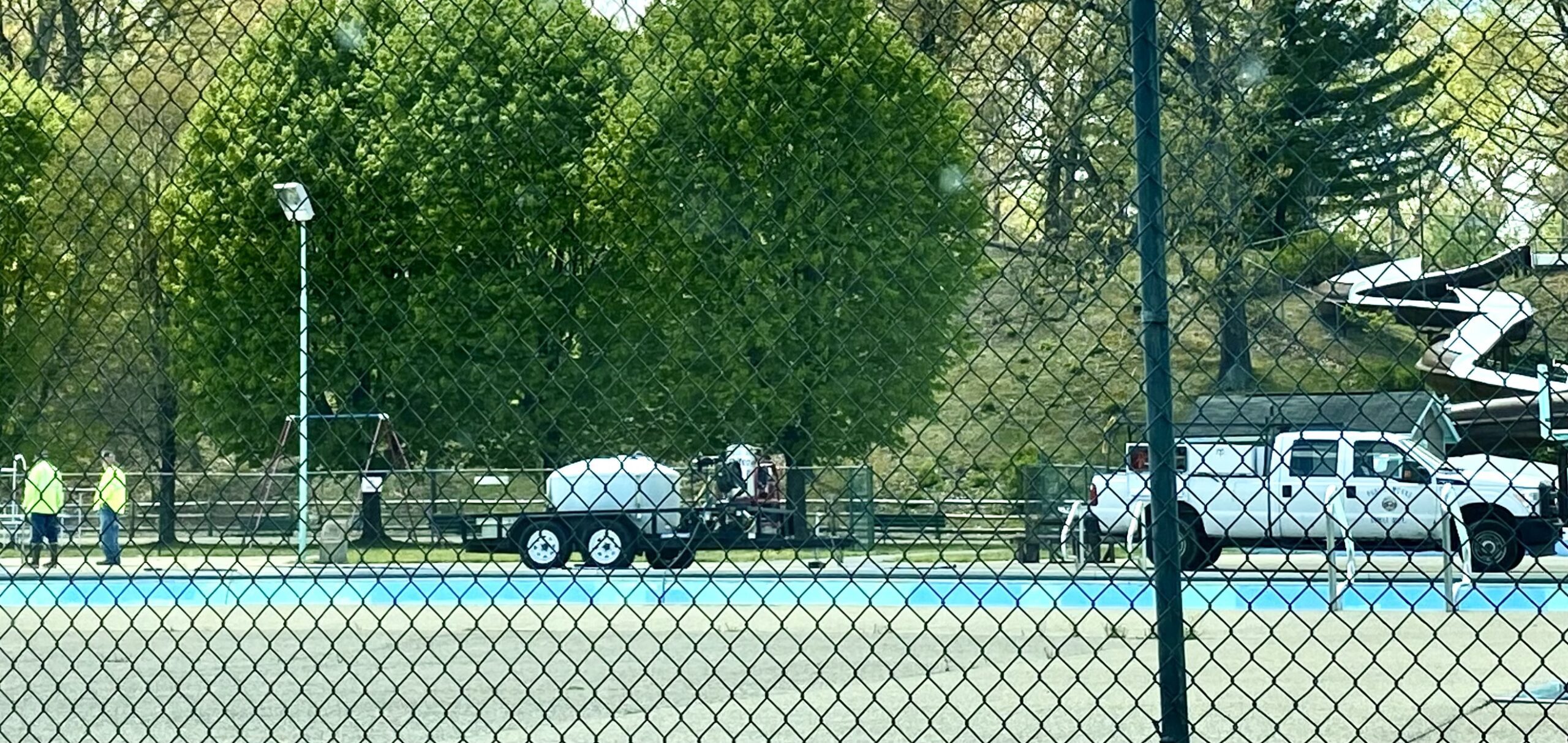 Nonetheless, City of Beckley Public Works members could be observed Tuesday afternoon conducting what appeared to be maintenance to the still empty Sharon Dempsey (New River) Pool.