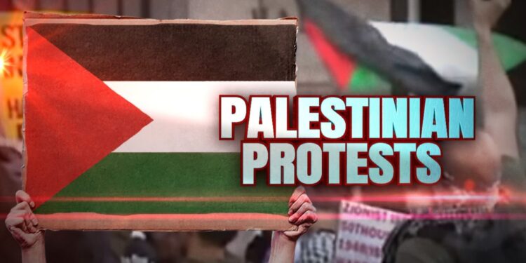 “I see all the people behind me advocating for human rights,” he said. “I don’t think they have one word to say about the fact that people their age, that were kidnapped from their homes or from a music festival in Israel, are held by a terror organization.”