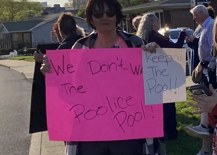 Tuesday’s gathering began at 6:00pm and saw Beckley residents hoisting signs and voicing their general displeasure with the circumstances as they have been presented. Visible signage displayed a variety of messages including, “LET ME SWIM,” “Keep The Pool!!,” and “We Don’t WANT The ‘Poolice’ Pool!,” as well as several others.