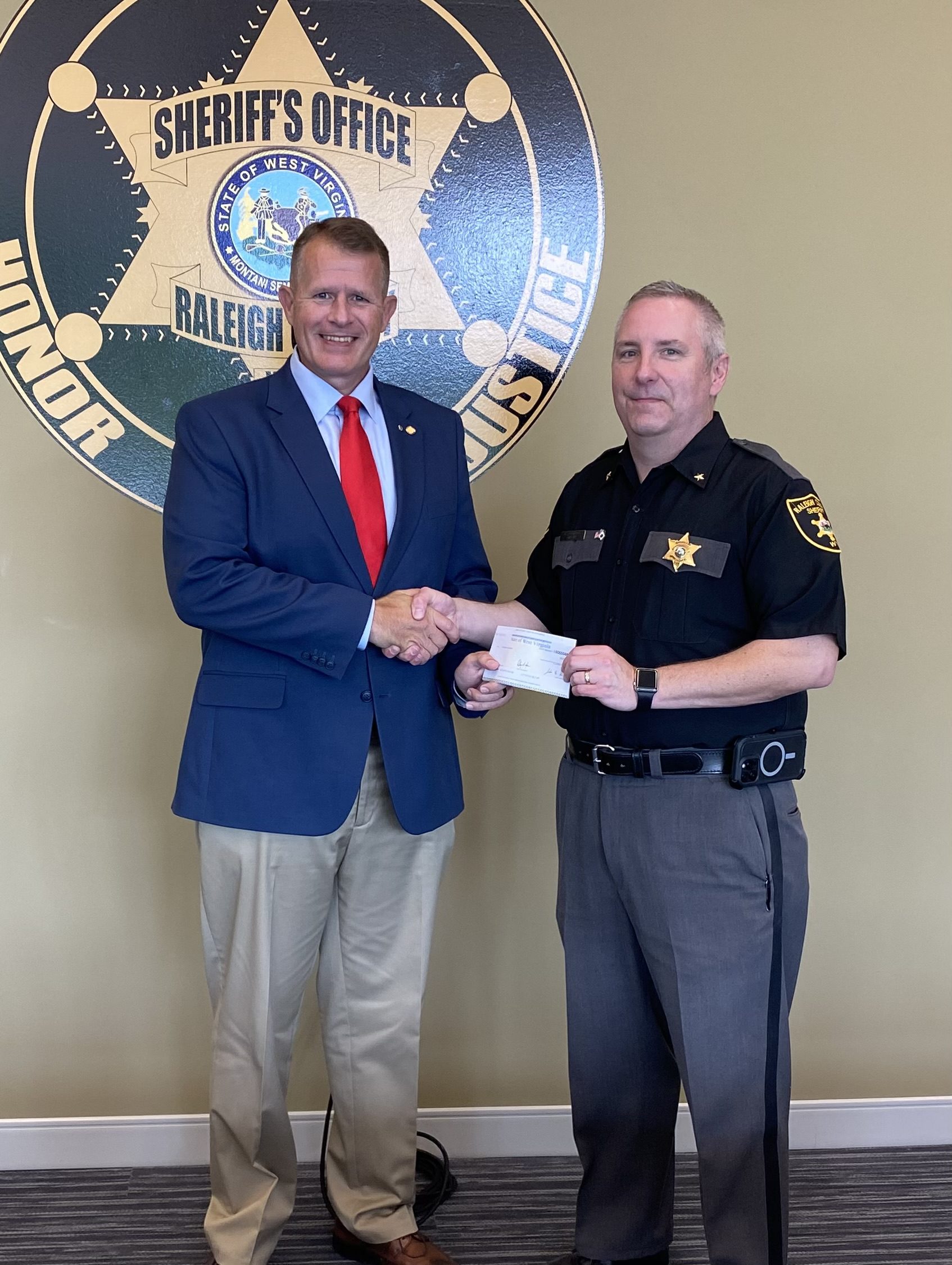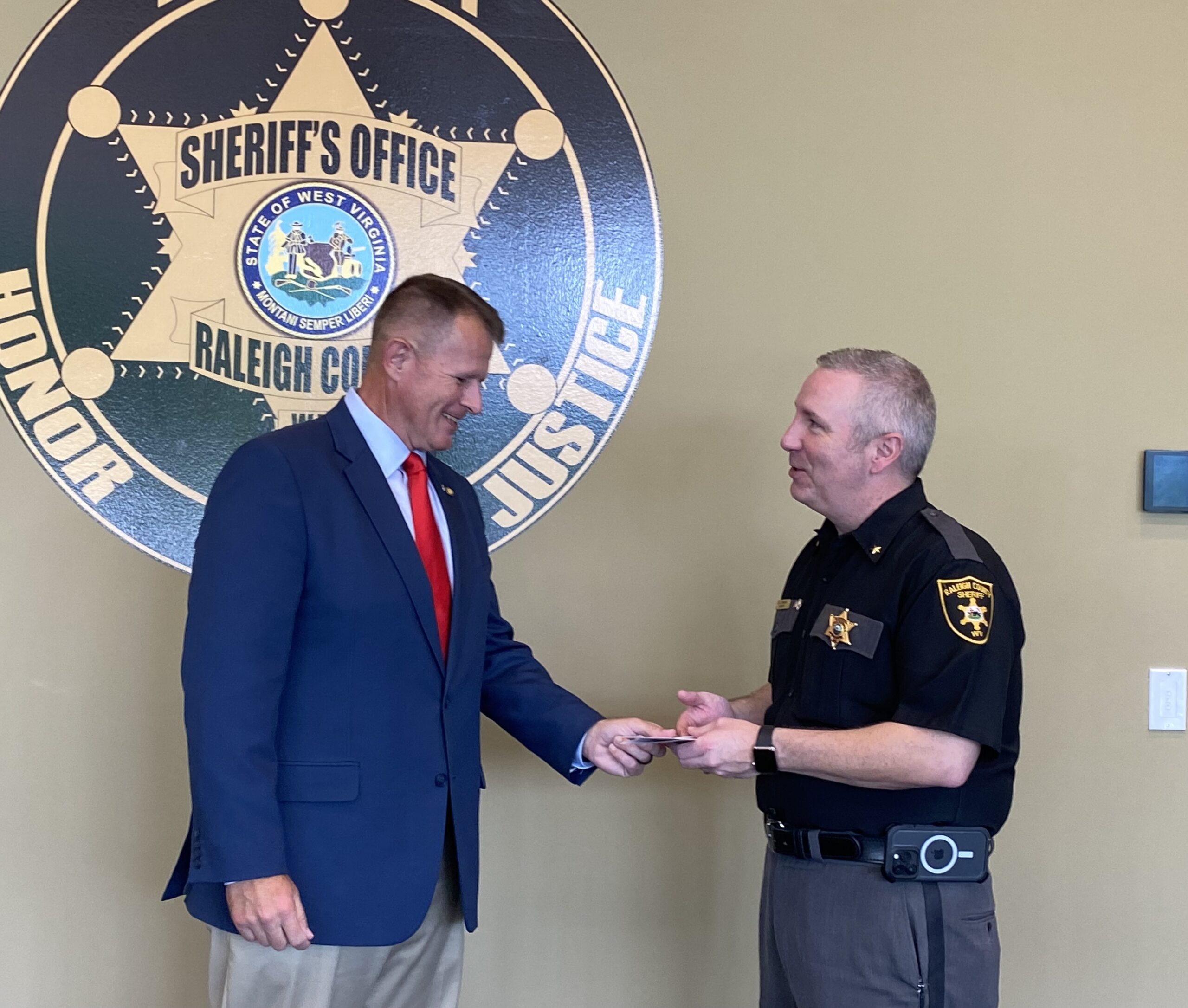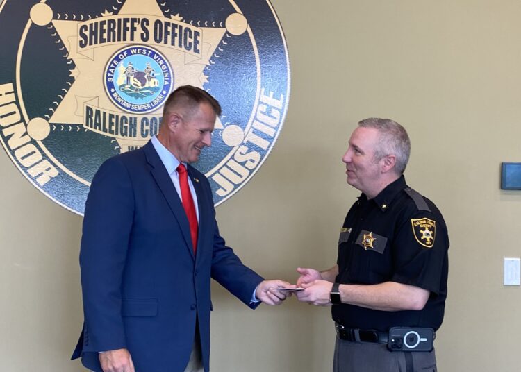 BECKLEY, WV (LOOTPRESS) – West Virginia House of Delegates member Eric Brooks paid a visit to the newly completed Raleigh County Sheriff’s Department Offices on Friday for the presentation of a check which will go toward the acquisition of a new bullet retrieval system for the department.