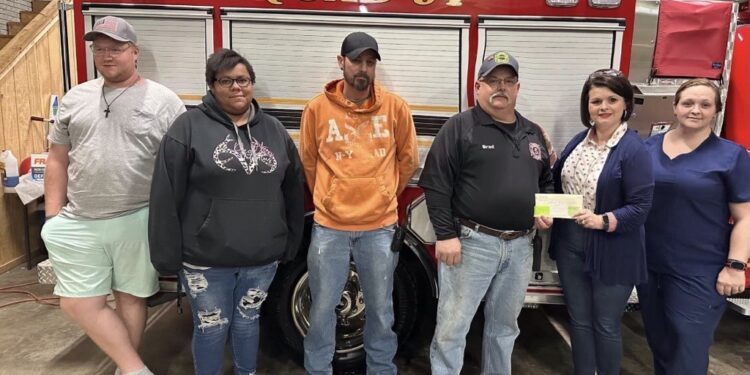 Tully also visited the Birch River Fire Department to present a $2,500 LEDA grant she had secured to help them purchase a new pumper truck.