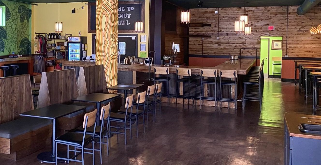 Along with an exceptional atmosphere complete with eye-catching wall art, as well as trim and furniture custom crafted from reclaimed chestnut lumber, Chestnut Beer Hall offers multiple types of alcoholic and non-alcoholic beer including Dad Joke Pilsner, South Park Porter, Halleck Pale Ale, Sleep of Reason Imperial Stout, and more.