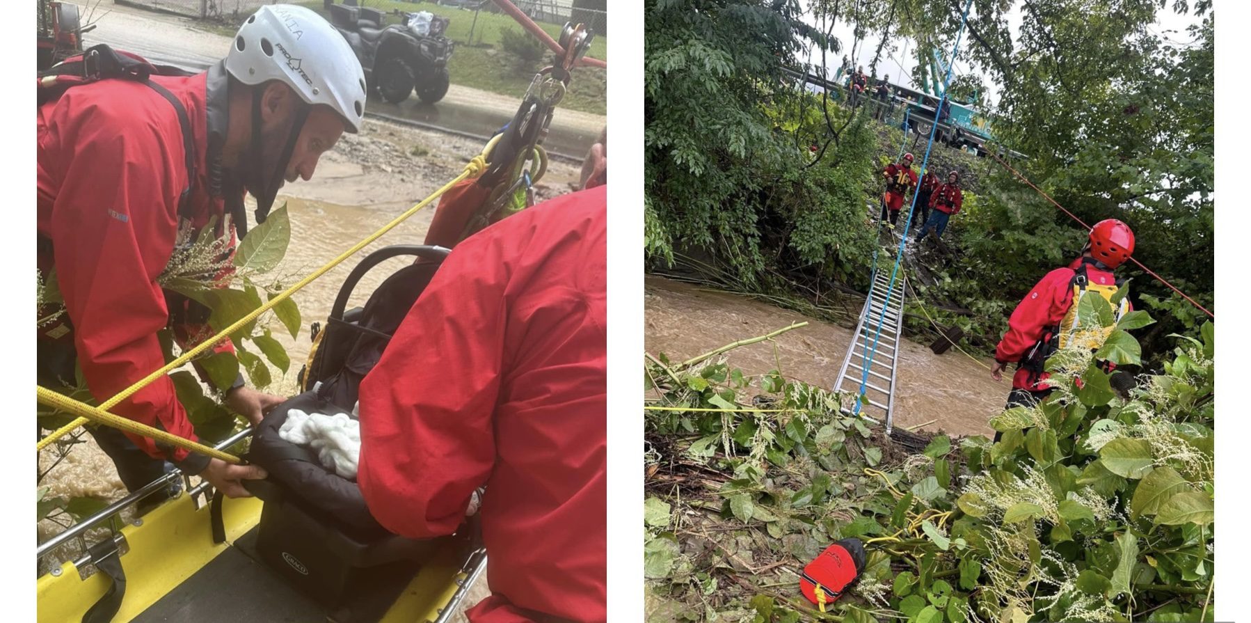 According to the Ansted Fire Department, the Fayette County Swiftwater and Rope teams responded to calls for assistance in eastern Kanawha County today following an excessive rainfall event that occurred, producing up to 9.1 inches of rain in some areas.