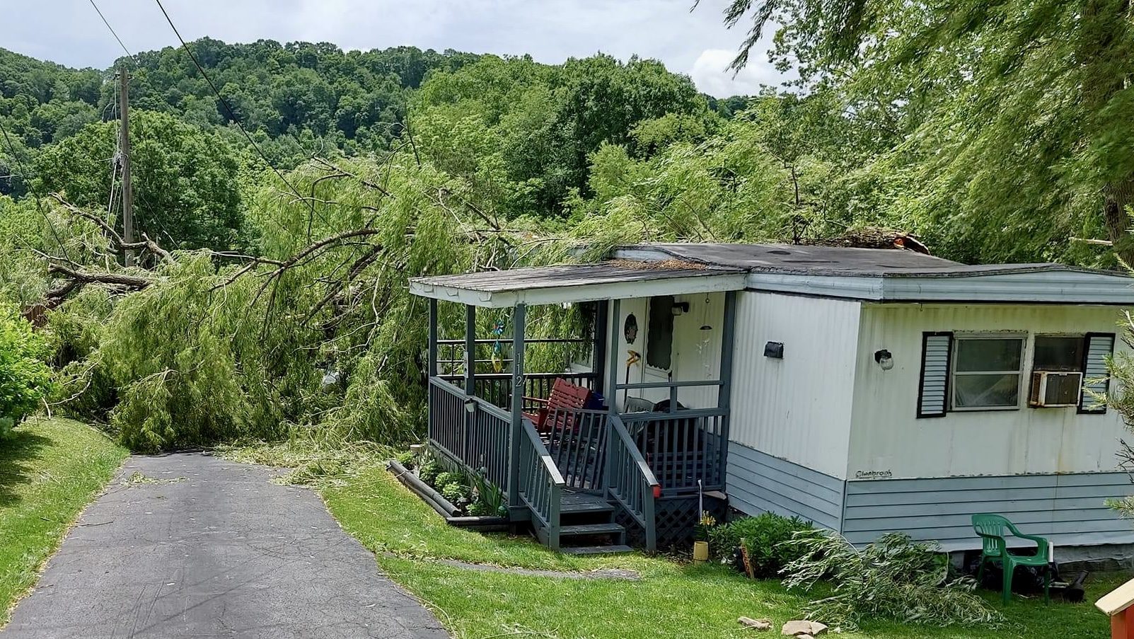 Large weeping willow branches are said to have broken off from the tree itself and landed not only on the residence, but also on a nearby vacant vehicle. Branches and debris could also be seen to have blocked of the roadway near the residence.