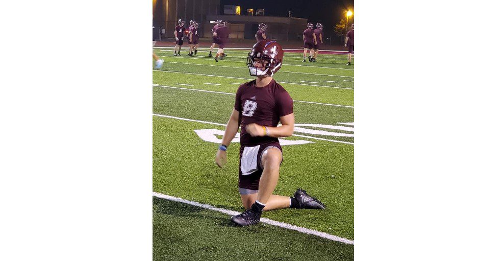 Beckley quarterback Maddex McMillen stretches out during midnight practice at Van Meter Stadium on Monday morning in Beckley. (Rusty Udy)