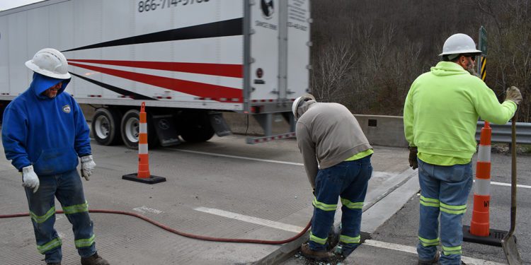 CHARLESTON, WV (LOOTPRESS) – West Virginia Division of Highways bridge maintenance workers are cutting, hammering and clearing debris on a bridge in northern Kanawha County as cars and tractor-trailers whiz by at 55 mph. They’re in the process of replacing expansion joints on the McQuain Brothers Bridge.
