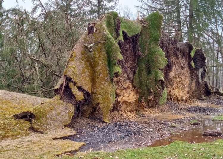 High winds uprooted and blew over trees at the basketball courts near the Mann’s Creek Gorge overlook.