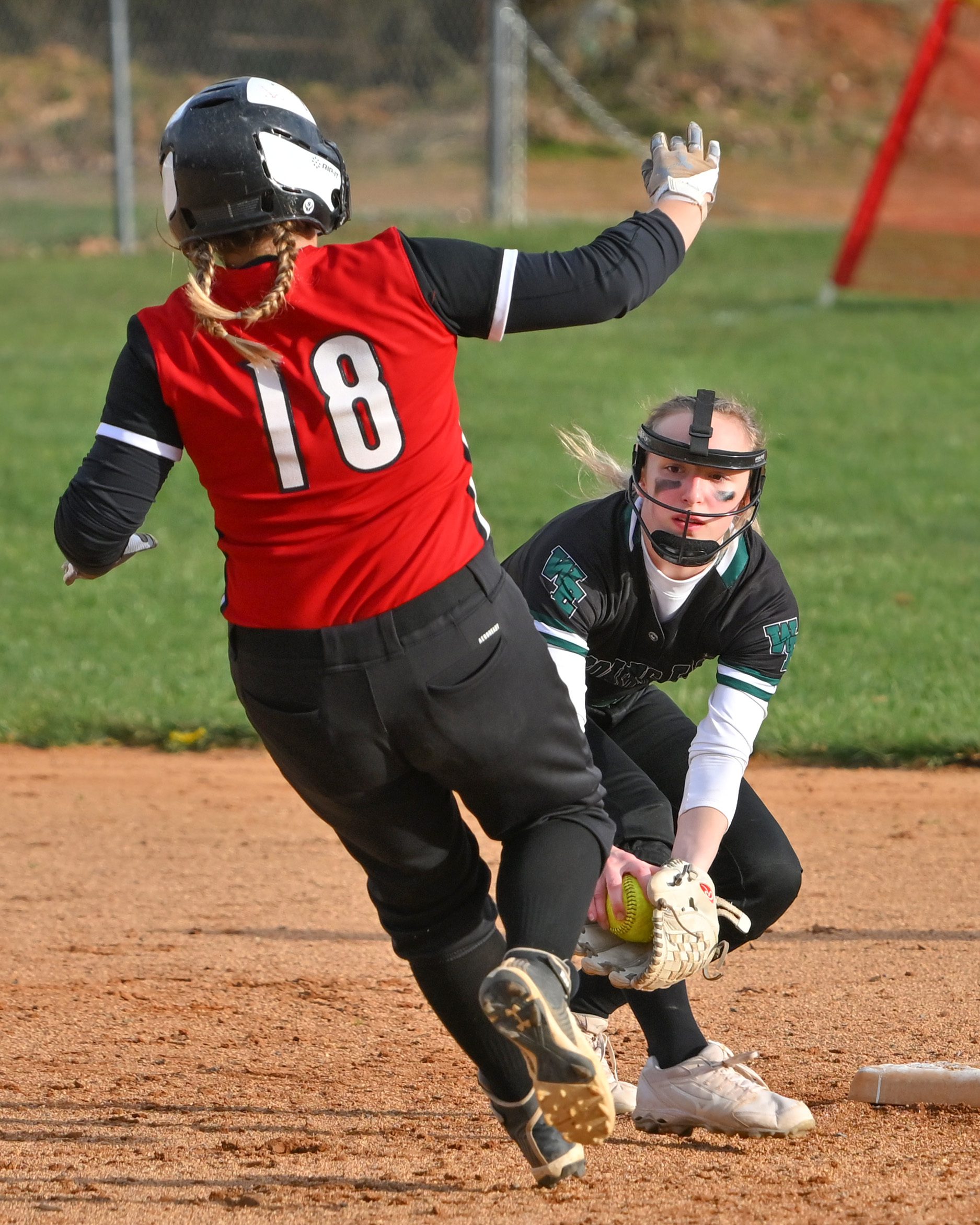 Pitching and catching – WE: Olivia Hylton and Kayley Bane; PV: Honaker and Duckworth. WP: Hylton, LP: Honaker.