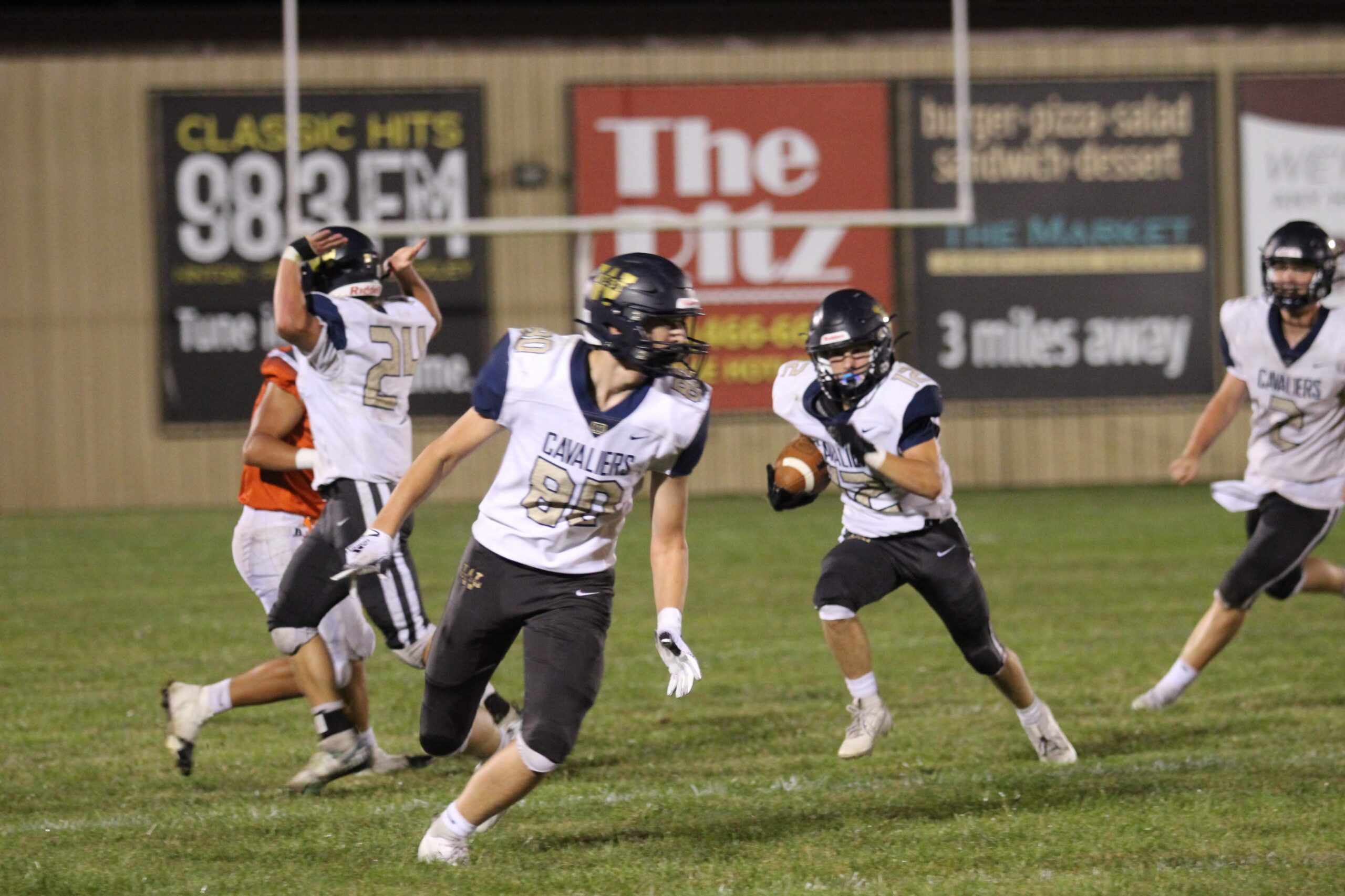 Cole Vandall threw a pair of touchdown passes and ran for another while Ethan Holliday picked up 90 yards on eight totes. Jake Pate led all rushers with 96 yards and two scores.