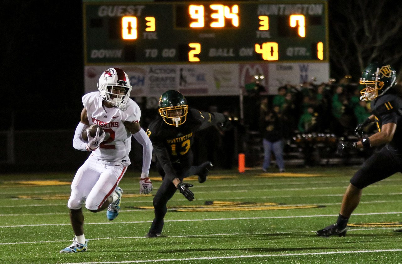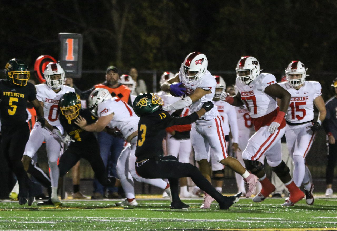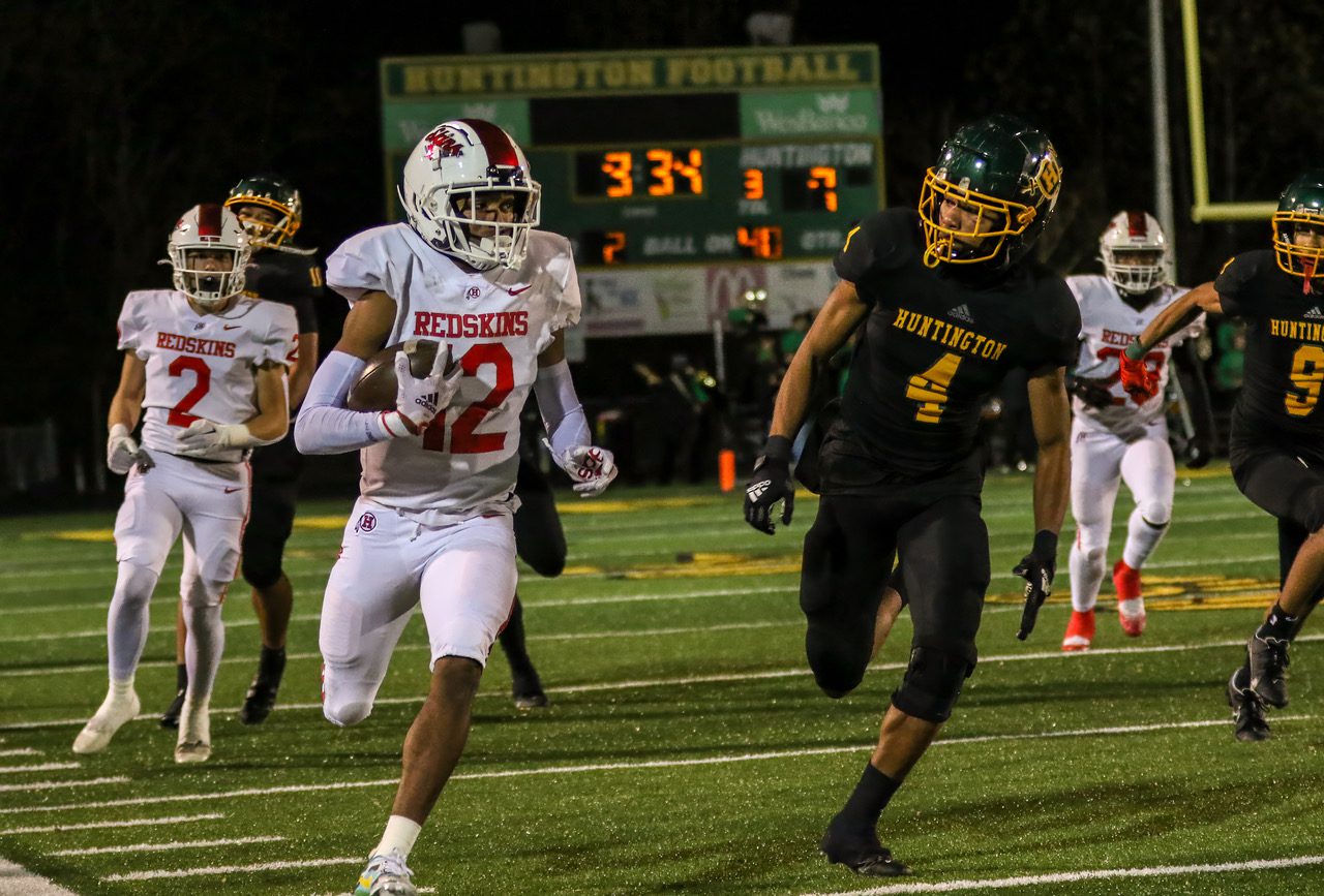 Huntington – Tayveon Wilson scored a pair of touchdowns and Avonte Crawford threw a pair as Huntington jumped out to a 21-6 halftime lead, never looking back in a 28-6 win over Hurricane on Friday at Bob Sang Stadium in Huntington.