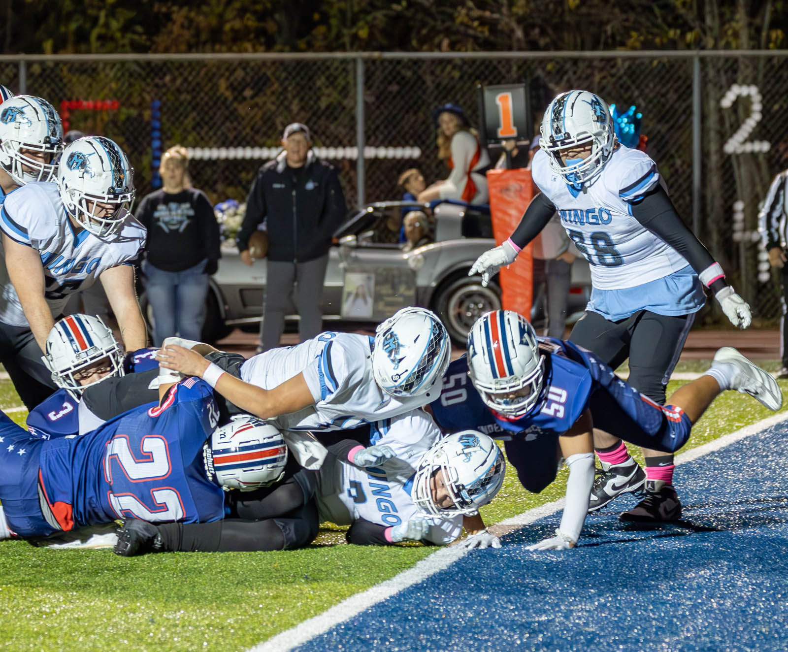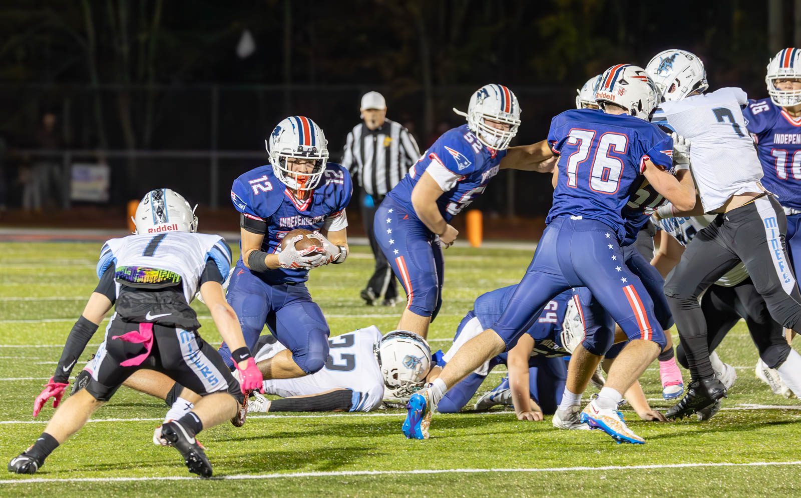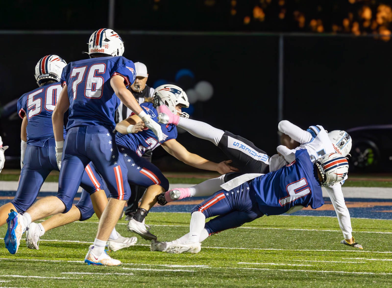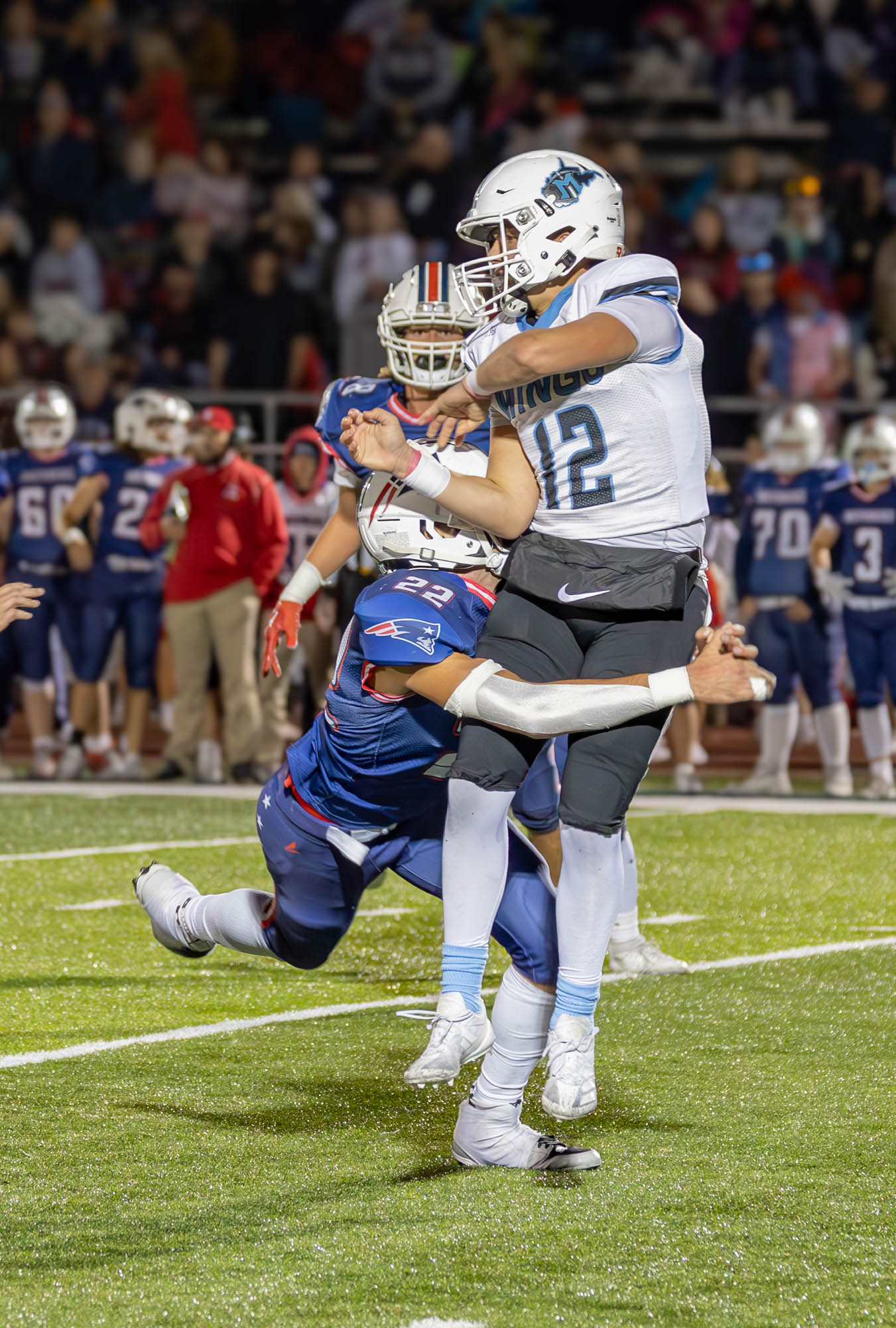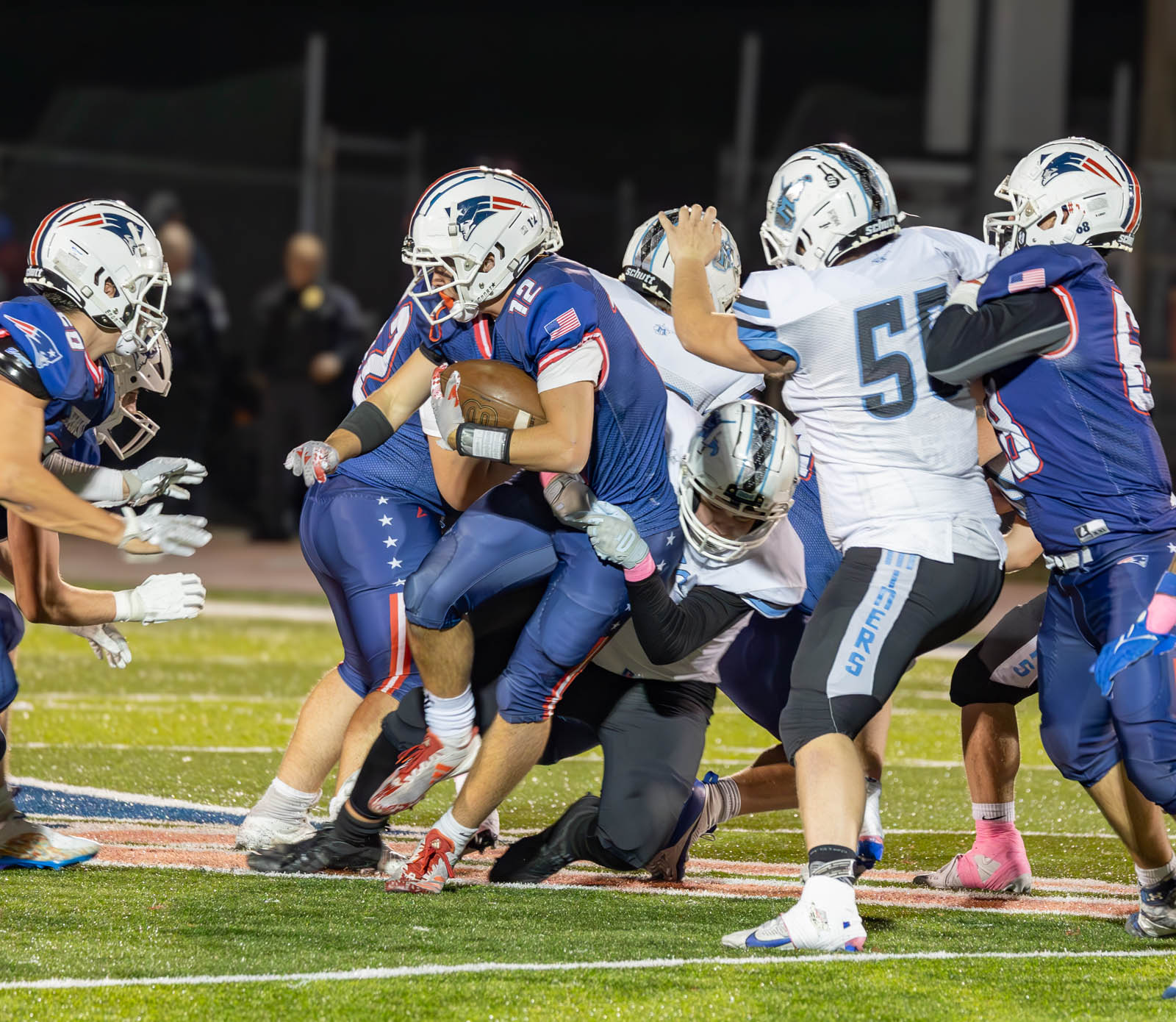 The Patriots rolled up 564 yards of total offense in the win. Quarterback Brock Green completed 12 passes for 281 yards and a touchdown while Nelson rushed for 272 yards in the win.