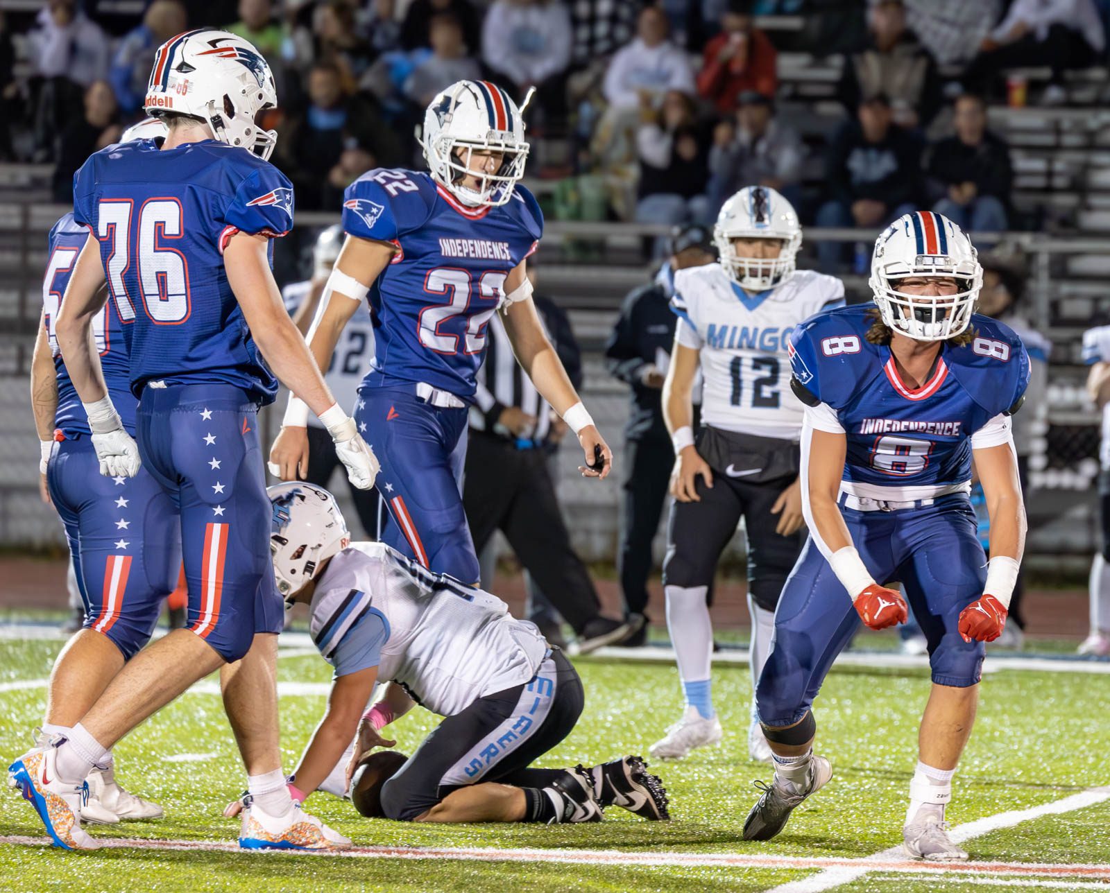Sylas Nelson scored four touchdowns as Independence rolled to a 52-28 victory over Mingo Central Friday night in Coal City.