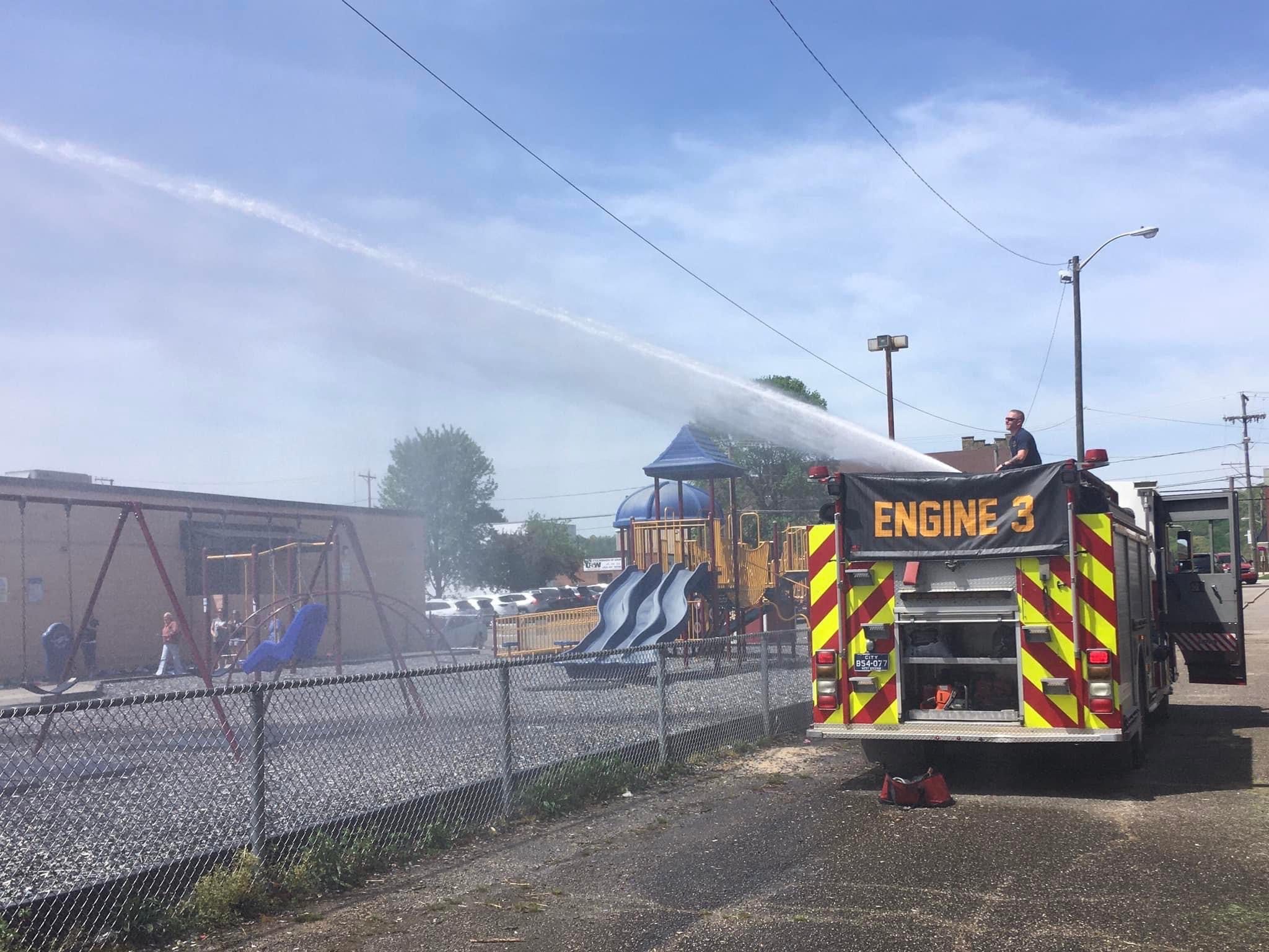 According to a Facebook post from the Nitro Fire Department, students at Nitro Elementary were able to get cooled off after fire crews brought a fire truck to the school and turned on the water.