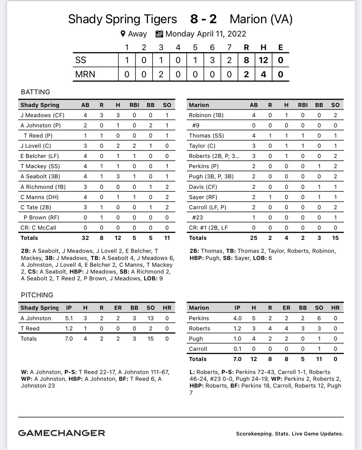 Princeton – Shady Spring sweets both of its opening round Coppinger Tournament games Monday evening, beating Honaker, Va. 15-6 and Marion, Va. 8-2.