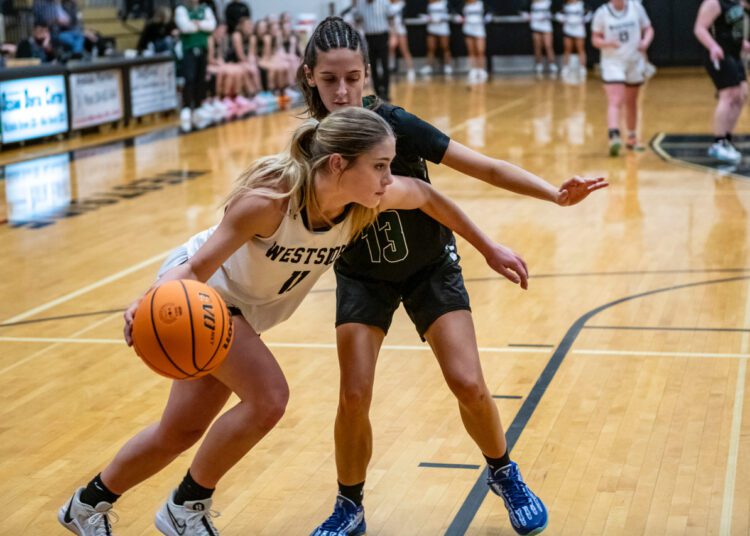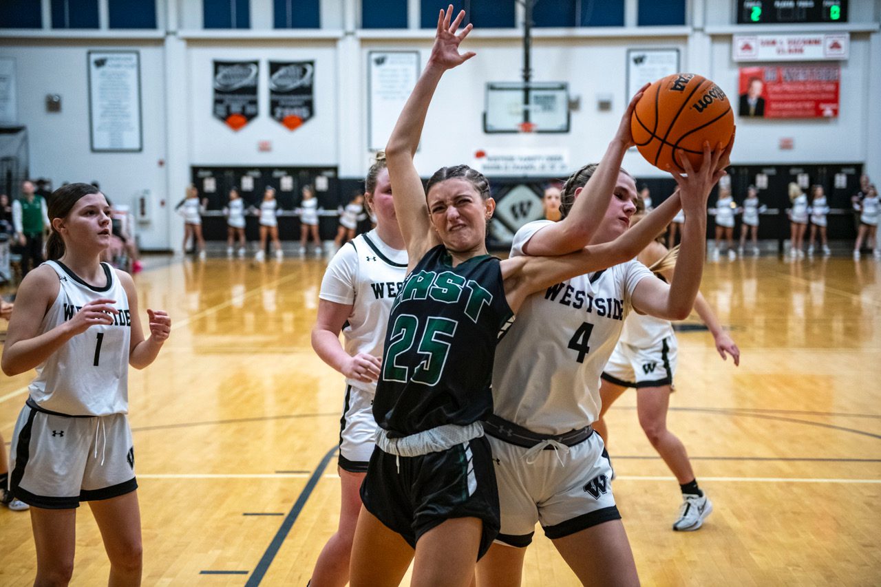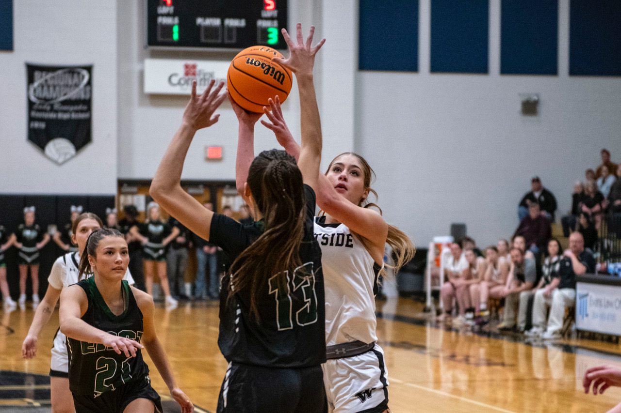 Following Brown’s 7-0 spurt to open the scoring, Gabby Cameron added a three-point play to push the lead to double digits. A pair of Abi Baker layups made it a 14-0 contest before Westside broke the ice with an Alaina Lester free throw with 1:33 to play on the opening frame. A pair of Blackburn free throws and another Brown 3 pushed the advantage to 19-1.