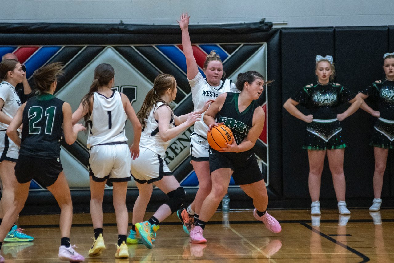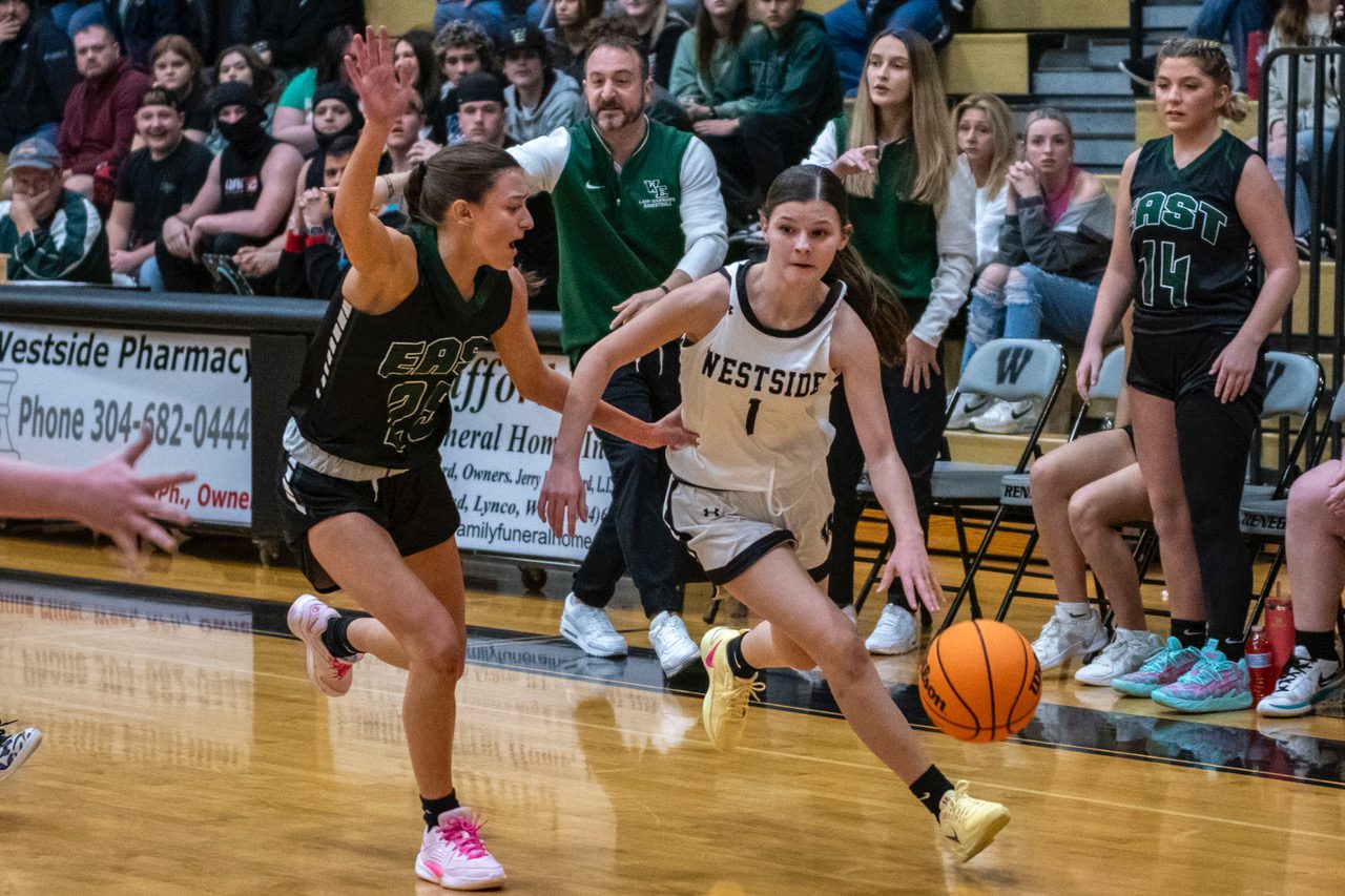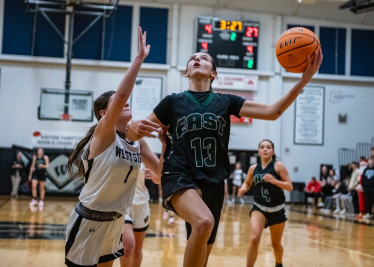 Rylee Brown, a transfer from Westside, led the charge through the first quarter for East, nailing 5-of-7 field goal attempts including a pair of 3-pointers. She scored the first seven points of the game, finishing the frame with 10, the half with 16 and the game with 19, second to on the night to East all-stater Cadee Blackburn.