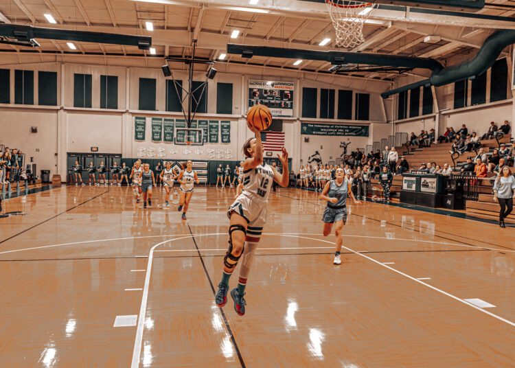 While the defense was working for the home team in the second period, senior Abby Russell was delivering the offense by scoring nine points.