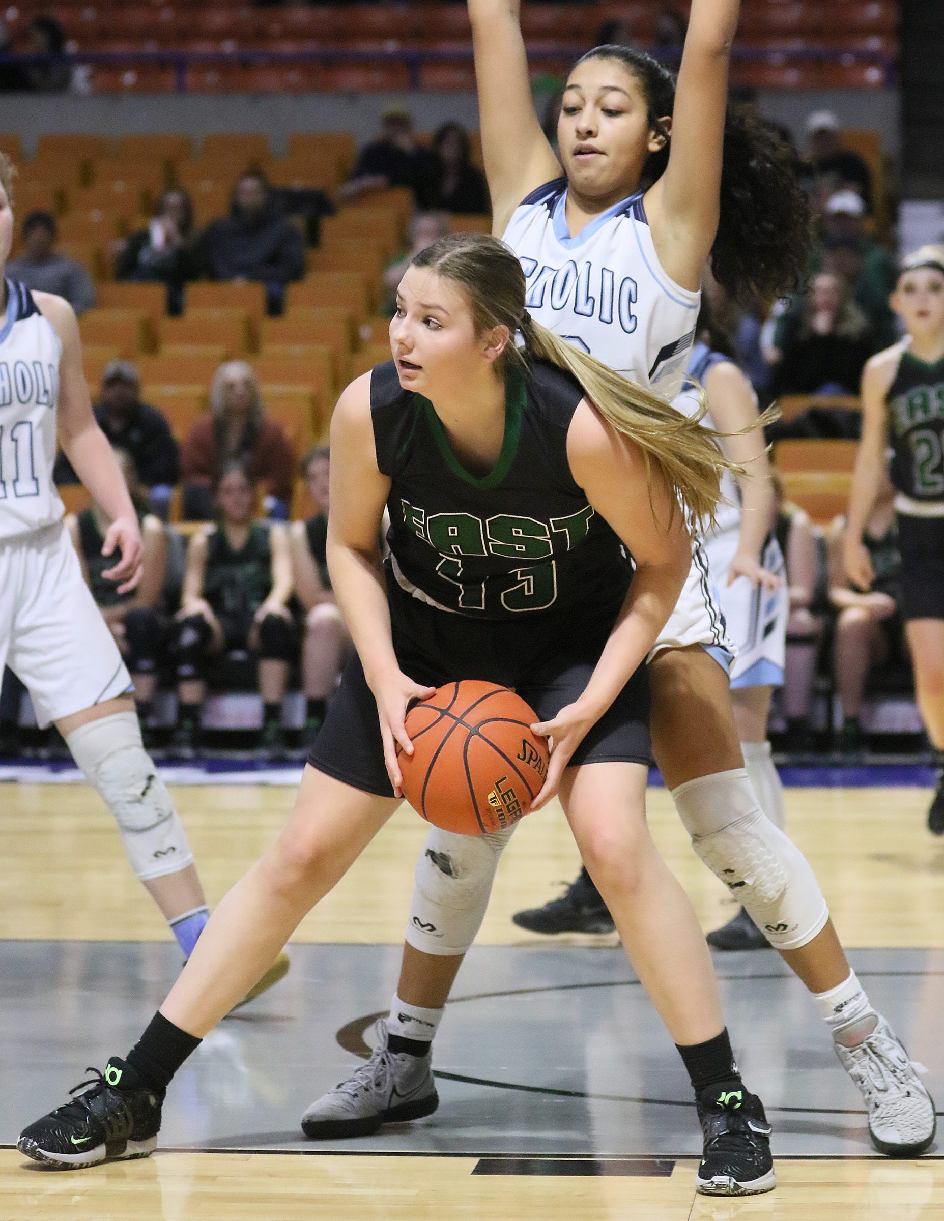 After a jumper from Lainie Ross and a 3-pointer from Mary Tokodi-Ruth staked Catholic to a 5-0 lead, East answered back with a pair of Hannah Blankenship free throws and a Kayley Bane layup to make it 5-4 at the 4:18 mark.