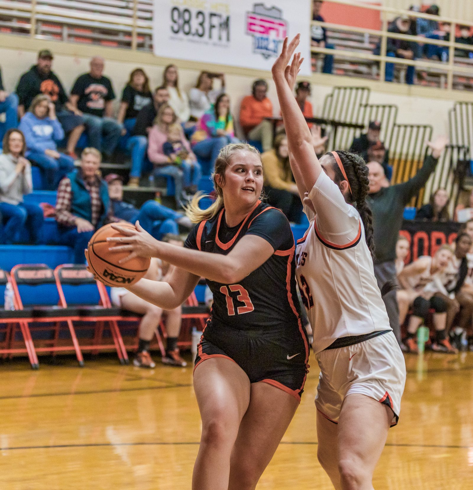 With 1:02 left in the contest, Persinger scored on a layup and completed the three-point play with a free throw, breaking a 42-42 tie and ultimately delivering the Class AA No. 2-ranked Lady Bobcats a 48-42 over the No. 9-ranked Tigers in Hinton.