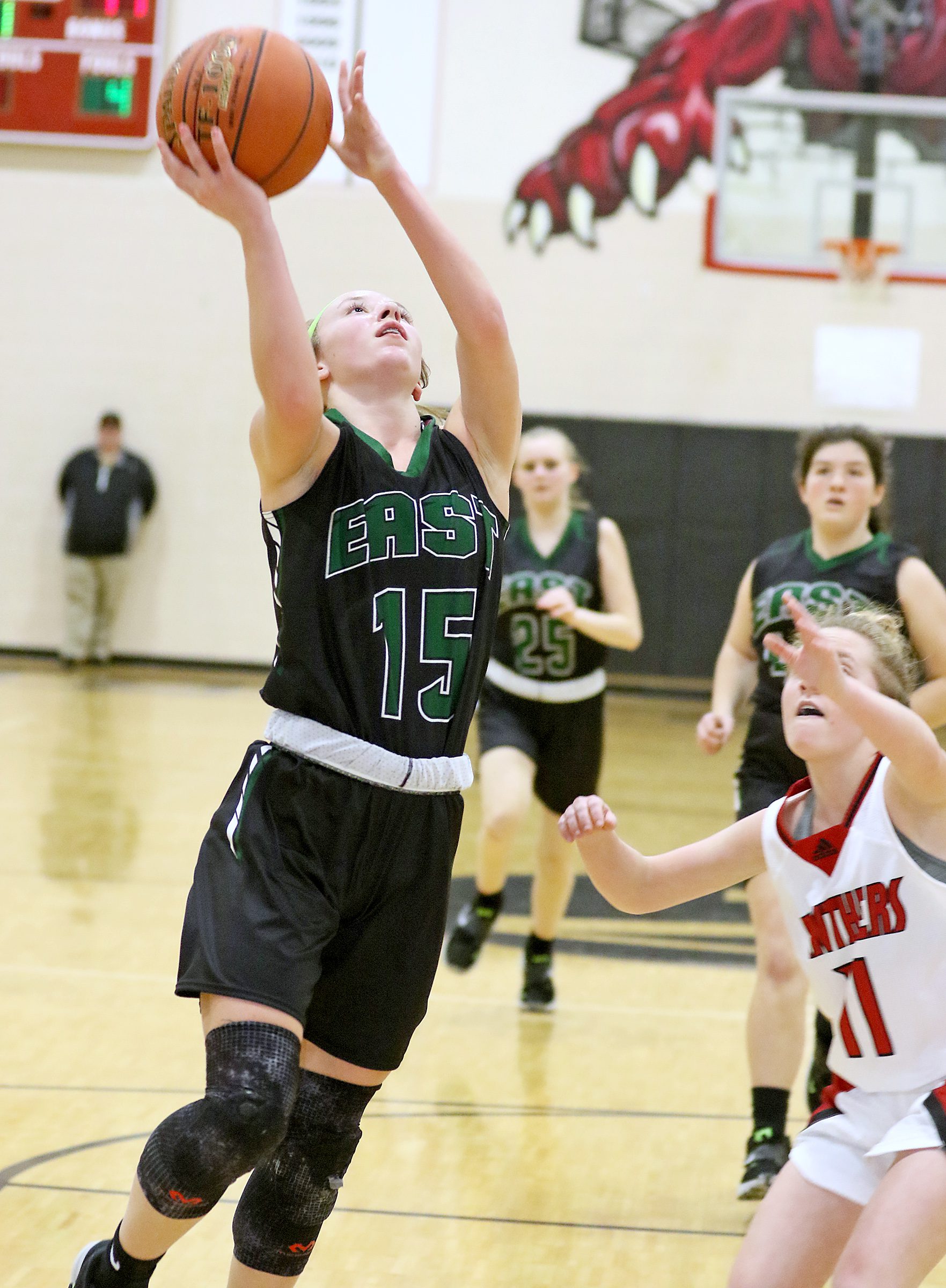 “We can usually cheat off of Colleen (Lookabill) and Maddie but Colleen got in major foul trouble,” East coach Angie Boninsegna said. “We kind of shifted a little bit and we didn’t guard the drive well. We helped some but it was a little bit late. (Perdue) made a couple good shots and she has good body control but when we went to two defenders on her it kind of slowed her down.”