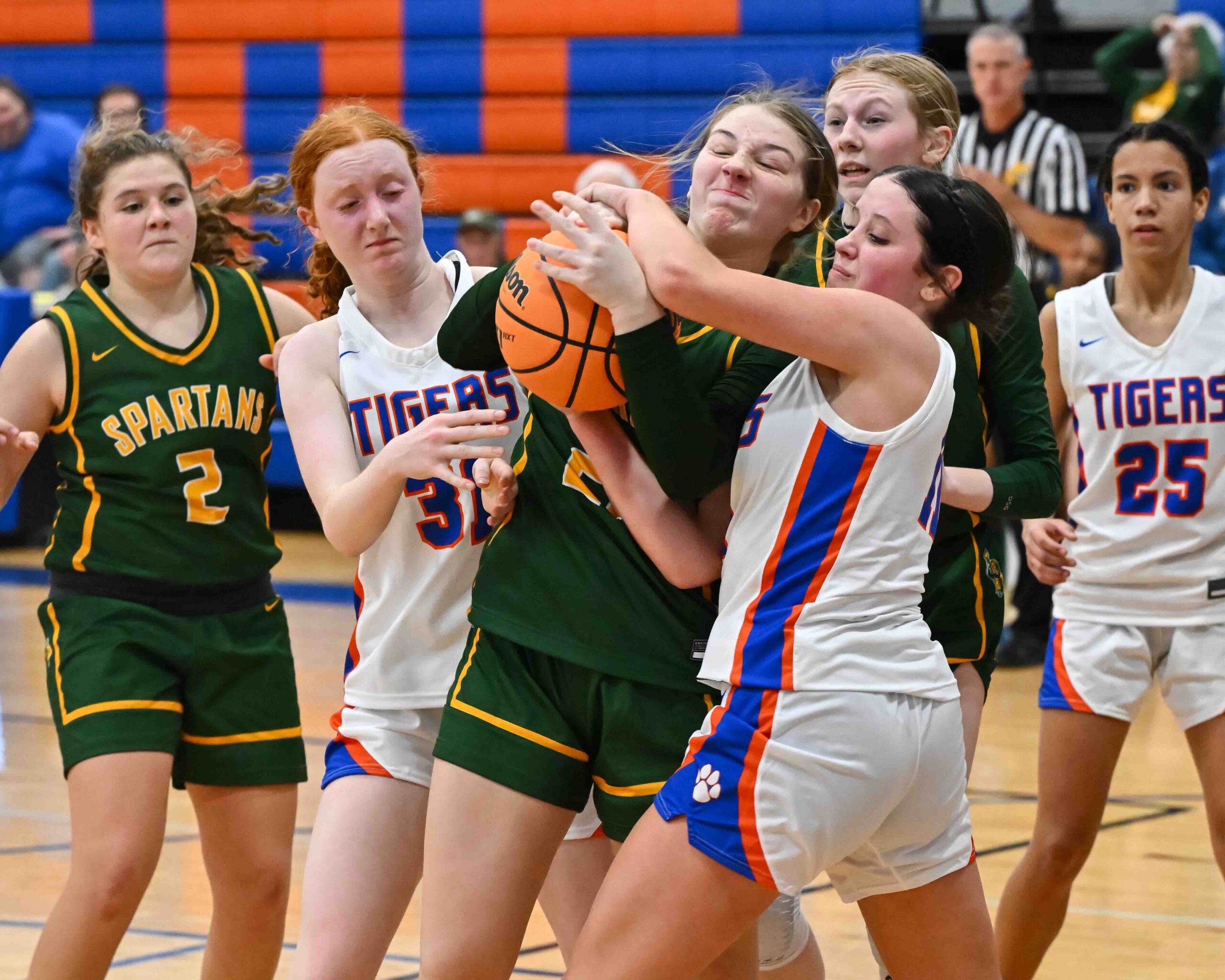 The answer to his questions loomed large as the Tigers shot 30 free throws to East’s six, surviving a late Spartan rally to secure a 53-46 win at Princeton High School.