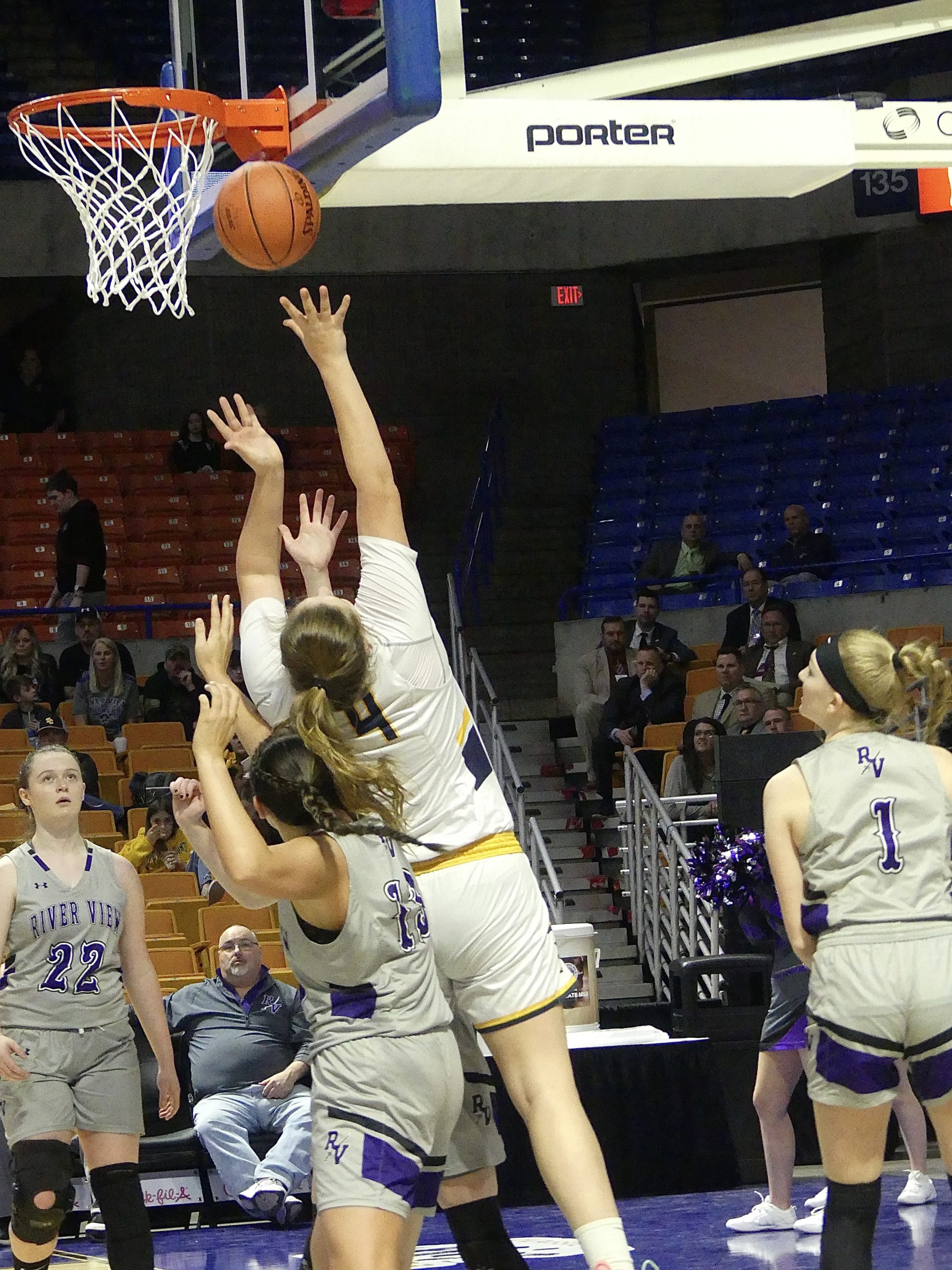 Van Tassell, the focal point for the River View defense got to work on the boards early, finishing the first quarter with 10 points and 12 rebounds – 10 of them on the offensive glass.