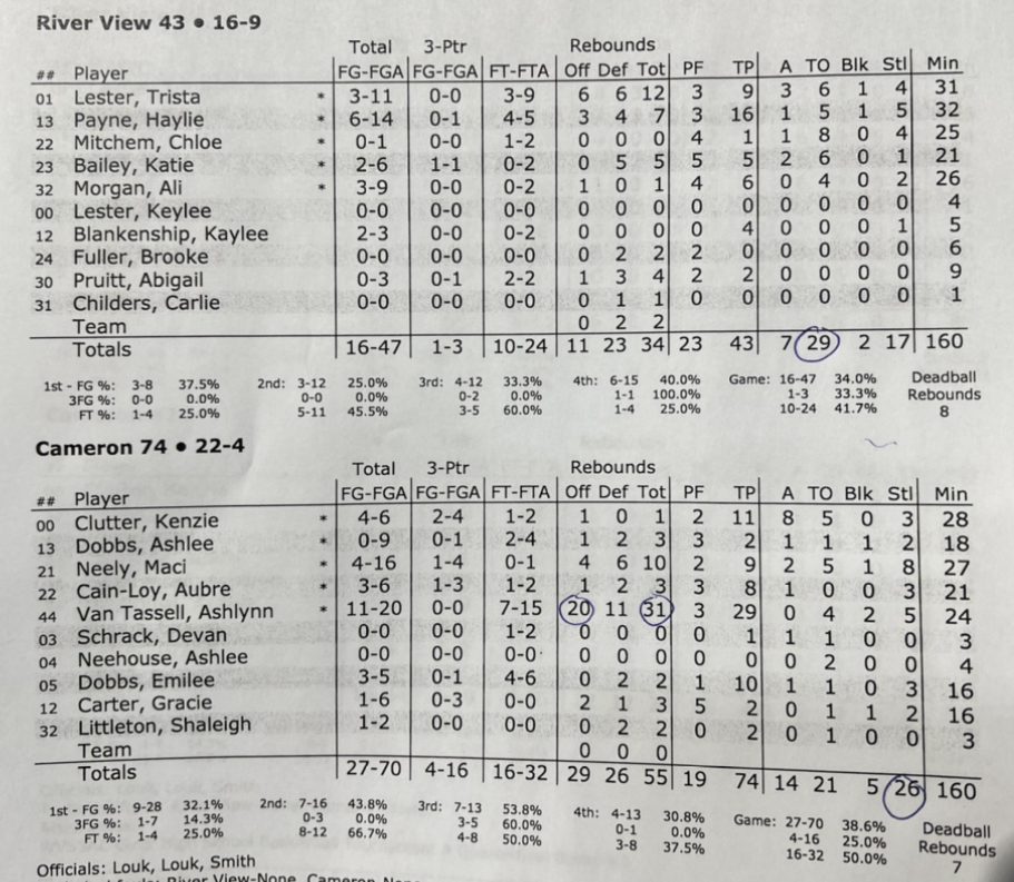 “I think the girls executed very well going knowing that we were a lot smaller,” Cameron coach Holly Pettit said. “I had all the confidence in the world in my guards. Their scrappy defense – I think we caused 29 turnovers and that’s something that’s very incredible and something to be proud of.”