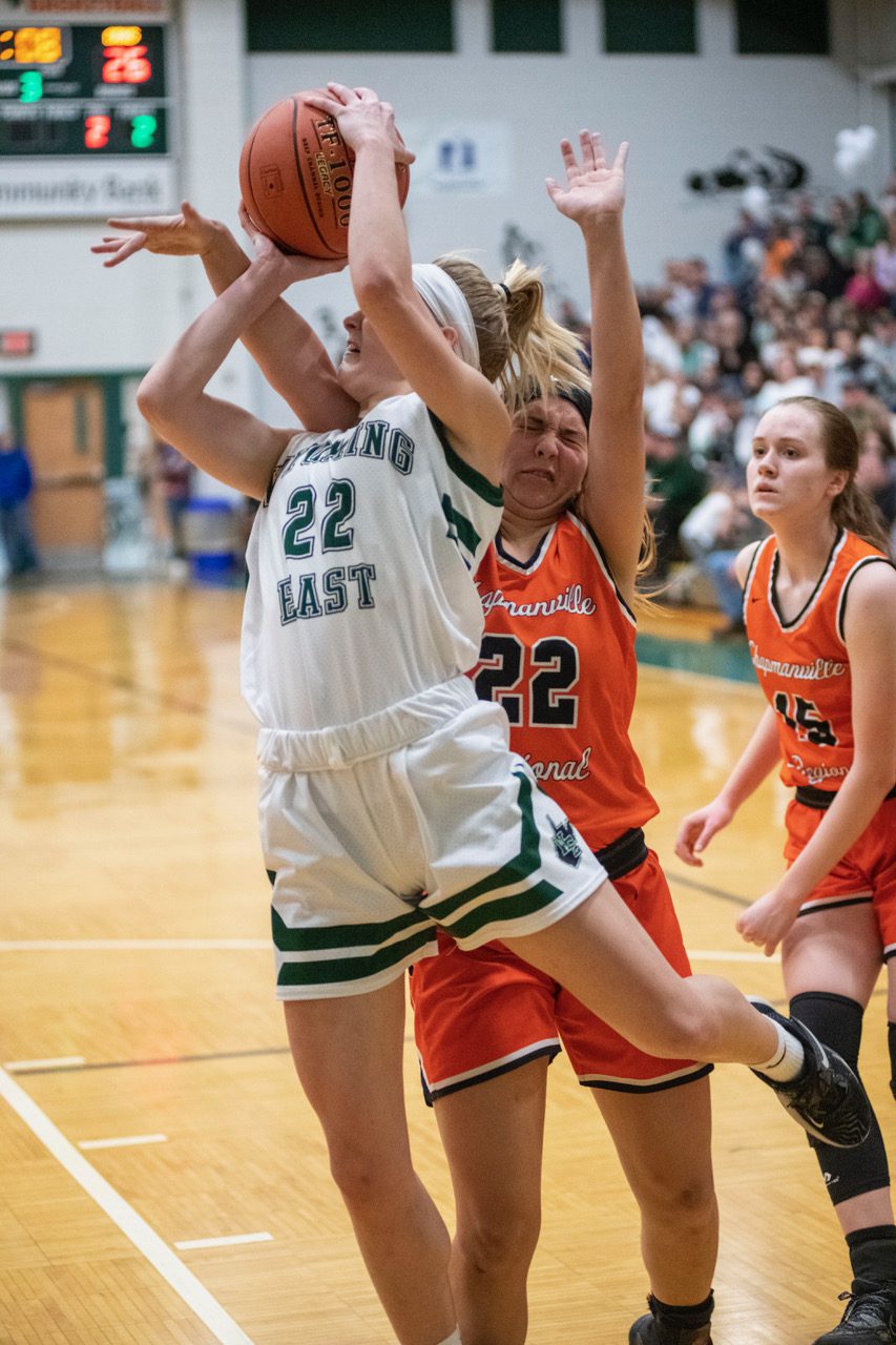 “I was struggling a little bit because I wasn’t hitting my shots but the second I hit that first 3 and that layup I knew I was going,” Bane said. “My teammates have my back, the cheering section was amazing and the adrenaline was just there. We were running the floor and it was just a huge game.”
