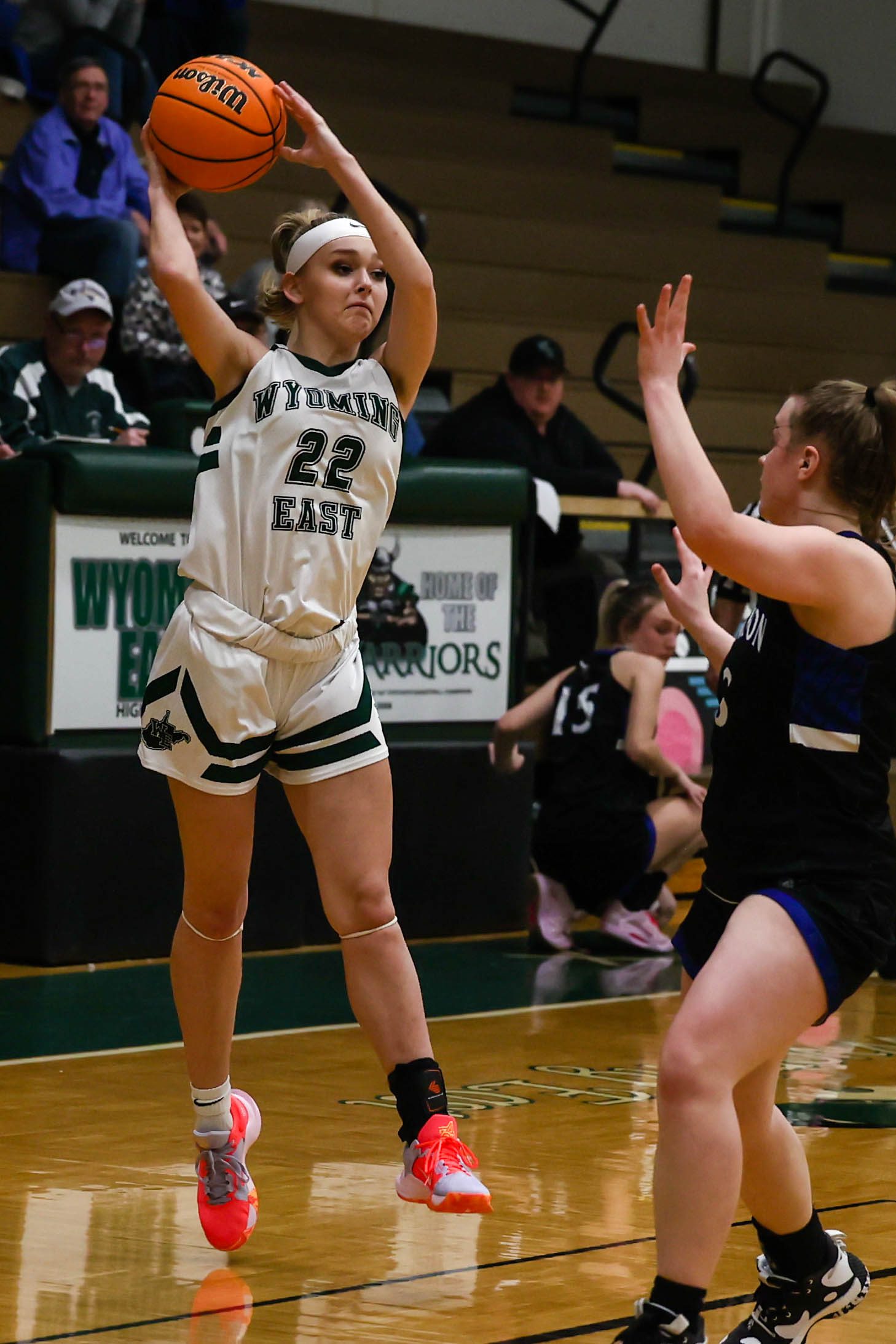 “They are so physical and really hit the boards hard and play hard. We went through spurts where we didn’t meet the challenge,” Wyoming East head coach Angie Boninsegna said. “I called a timeout, fussed at the them some and talked about toughness. They came out and played a lot better in the third and fourth quarter.”