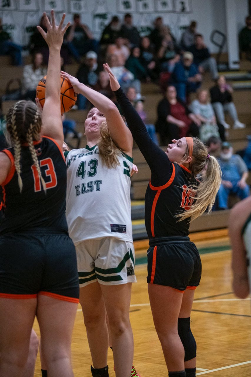 “I think she’s shooting it really well right now,” East head coach Ryan Davidson said. “She’s in a nice place and I think that one of the good things about this group is, if she’s feeling it, then they’re going to throw it to her. If Kyndal (Lusk) or Maddie (Clark) or somebody else has made the shots, we’re gonna throw it to them. They’re so unselfish. So yeah, if she gets on a heater we’re going to keep feeding her.”
