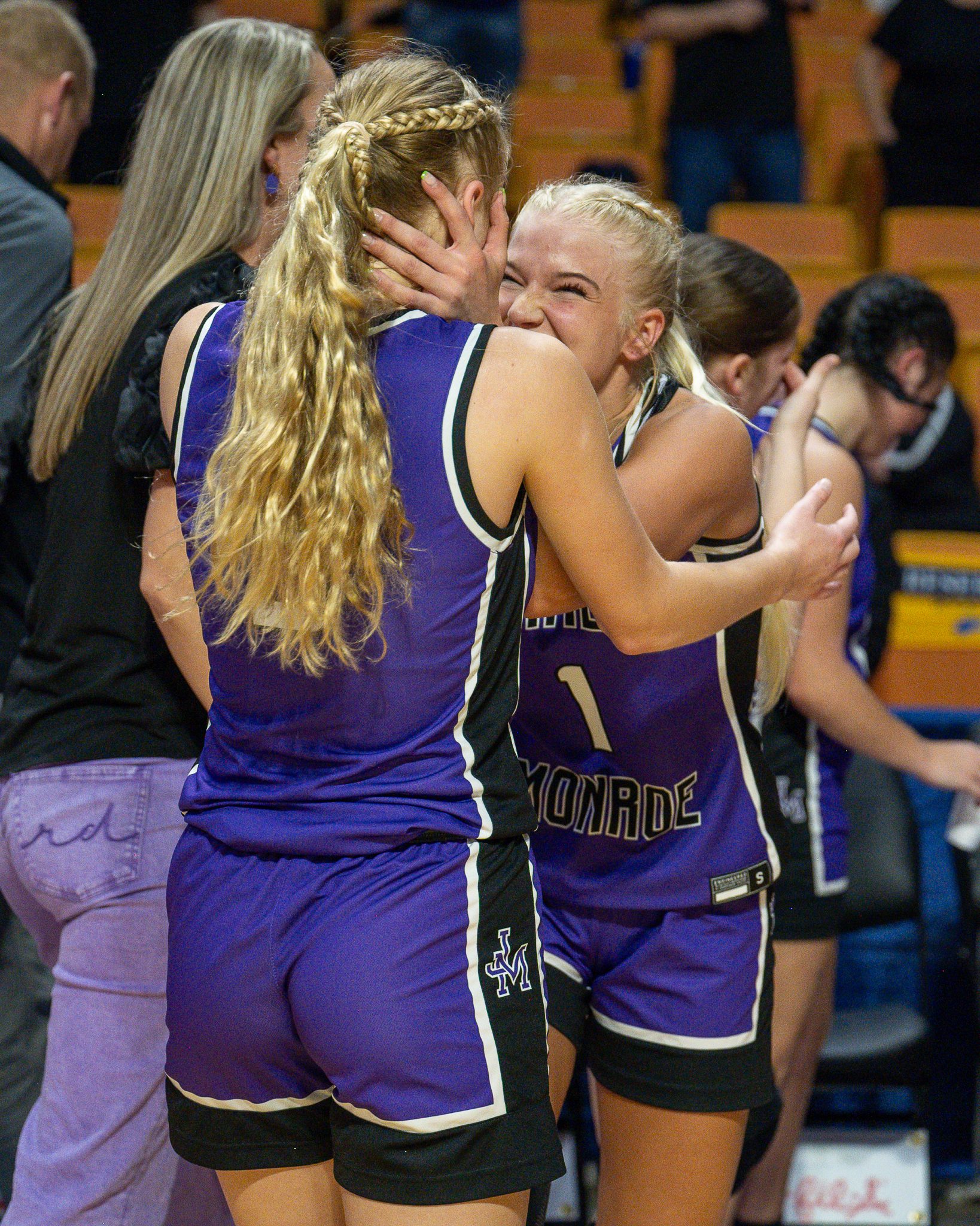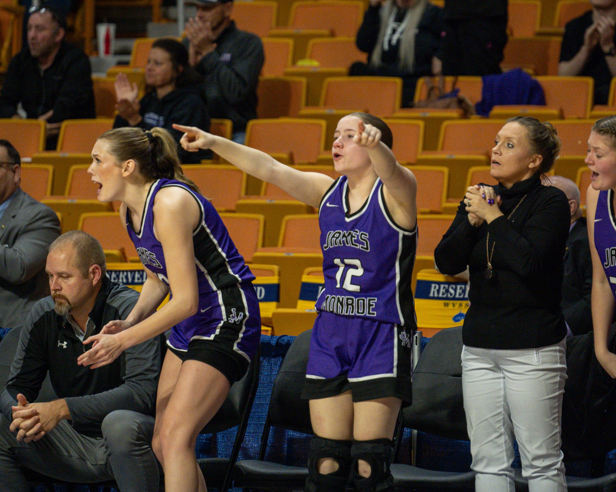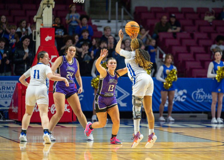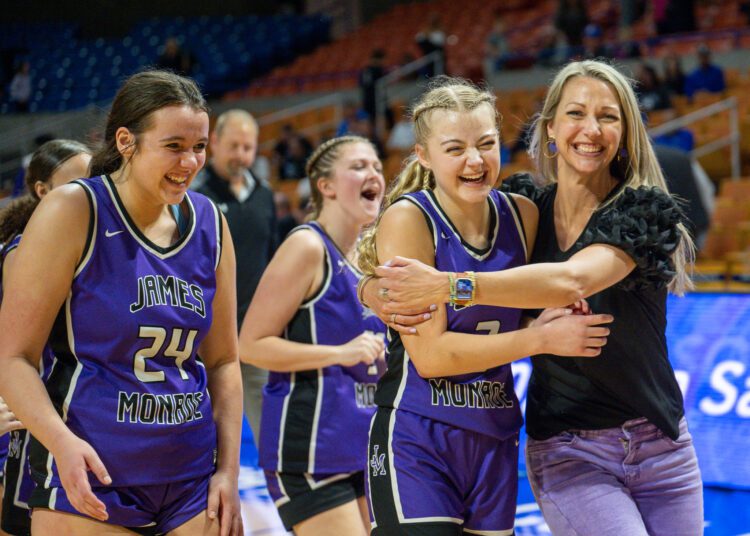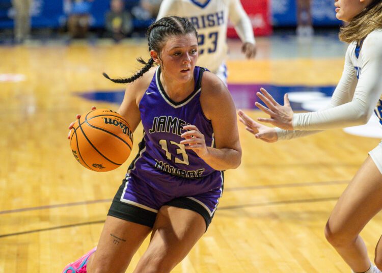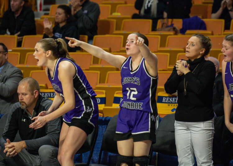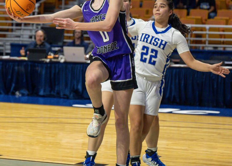 “I always tell the girls as soon as we hit that first layup, it’s like everybody takes a breath and we’re good to go,” James Monroe head coach Angie Mann said. “And that’s what happened tonight. We hit that first layup and were ready to go. They have that much confidence in each other. It’s just like a whole weight’s been lifted off their shoulders. So that helped us out right there off the bat. I mean, I don’t think that atmosphere is really bothered them too much. Once we hit that first one, we’re good to go.”