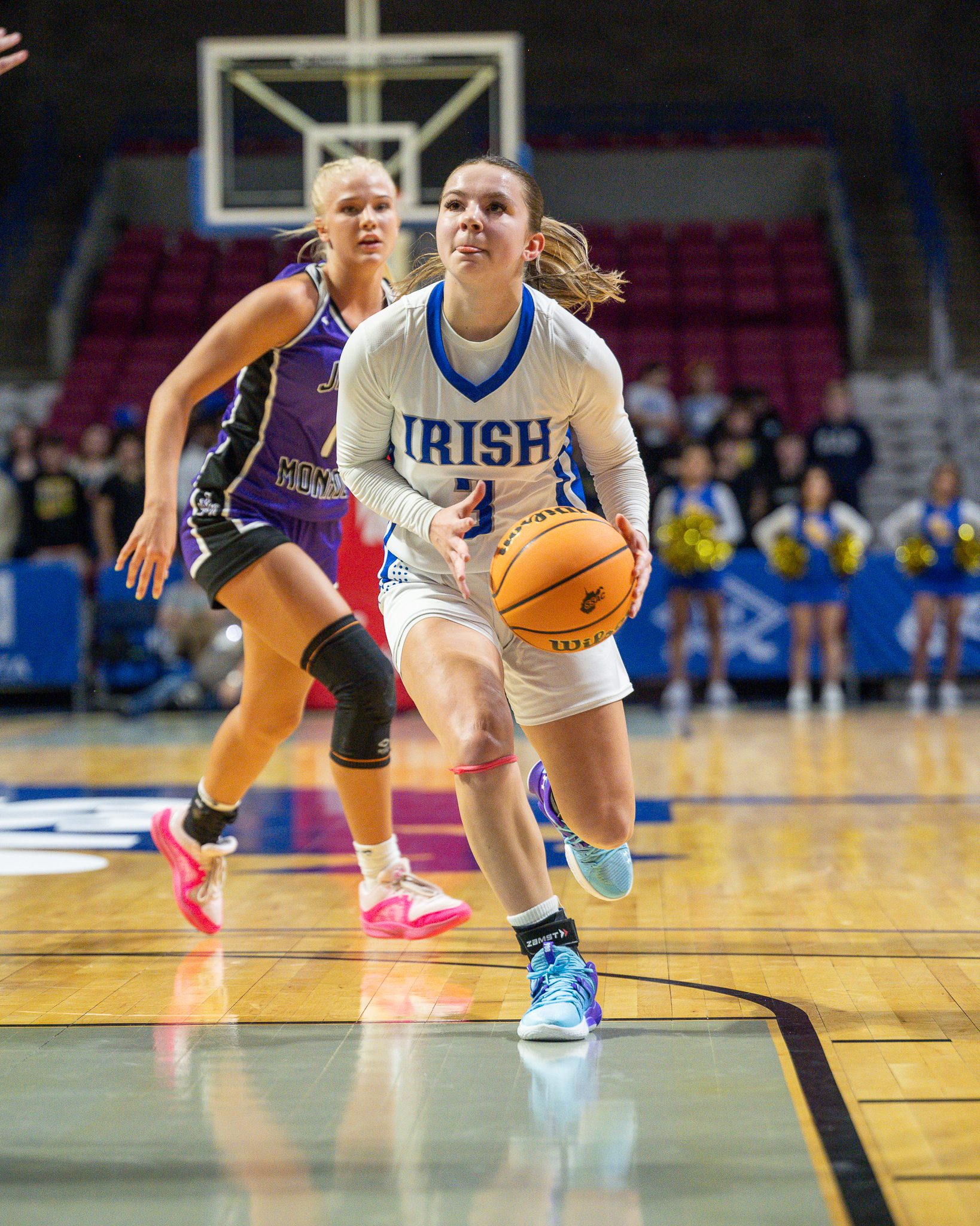 From there the Irish found their bearings hitting a 3 to close the quarter and adding seven field goals in the second frame. Meanwhile James Monroe started running out of steam, coinciding with Mya Dunlap’s exit after picking up her third foul with four minutes to play in the half.