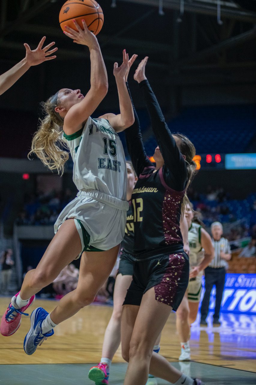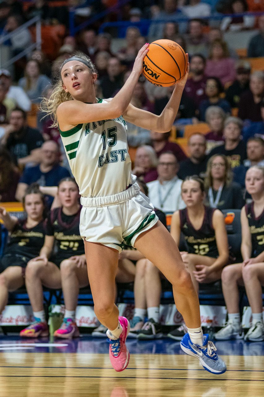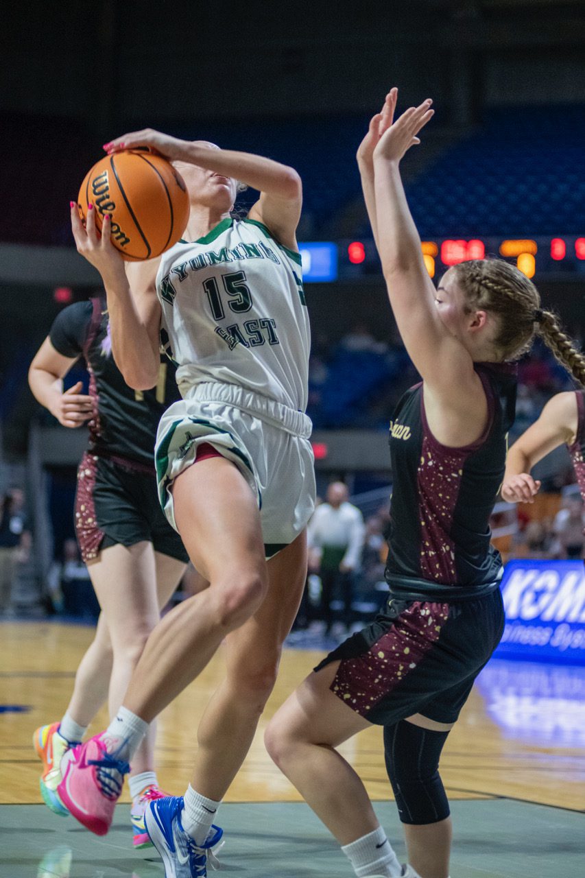 Wyoming East trailed just 34-31 after three quarters but an 8-0 run keyed by Annabelle Haught and Faith Pickens put the Lady Warriors’ repeat hopes in jeopardy. The offense then picked up as all-stater Cadee Blackburn did.