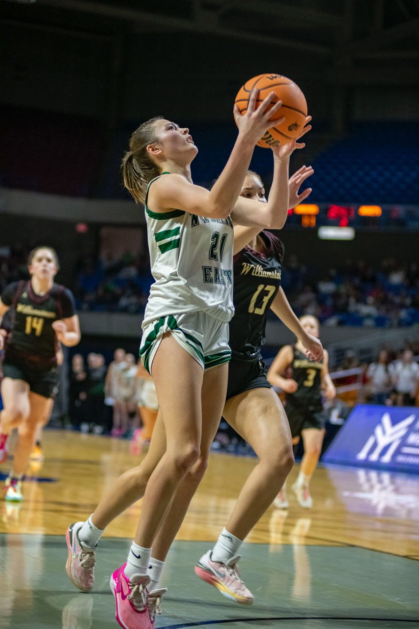 East did just that, breaking down Williamstown’s defense for a wide-open layup. Dribbling to the right of the key, Clark hit Alivia Monroe on a pick-and-pop allowing her to load and fire down to a cutting and open Baker for the decisive bucket with 14 seconds to play.