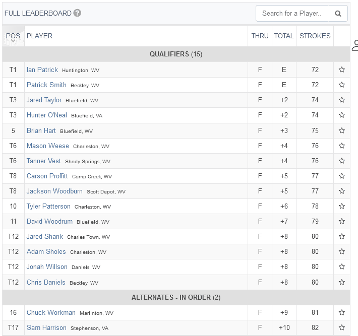 Chris Daniels from Beckley and Jonah Wilson from Daniels were among the 15 qualifiers as was four players from Bluefield that includes Jared Taylor, Hunter O’Neal, Brian Hart and David Woodrum.