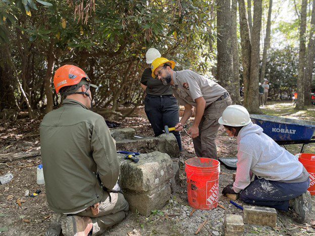 The park announced that Shelter 1 and many of the site’s masonry grills have been repaired. In Fall 2021, the park partnered with NPS Historic Preservation Training Center to preserve said structures. This was the first in a set of projects designed to utilize utilizing the Maintenance Action Team, an NPS-wide initiative to repair infrastructure on our public lands. New River Gorge and HPTC staff repaired 30 masonry grills, Civilian Conservation Corps-era fireplace, culvert, and entrance pylons, as well as Shelter 1’s wooden structure.