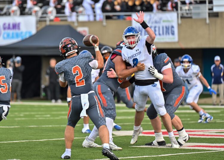 Collins leads Princeton with five catches for 127 yards and two scores. Murphy Clement has powered the Bulldogs with 143 yards rushing and two scores, adding a touchdown pass to Kashez Gedeon. Koi Fagan also has a rushing score for the Bulldogs.