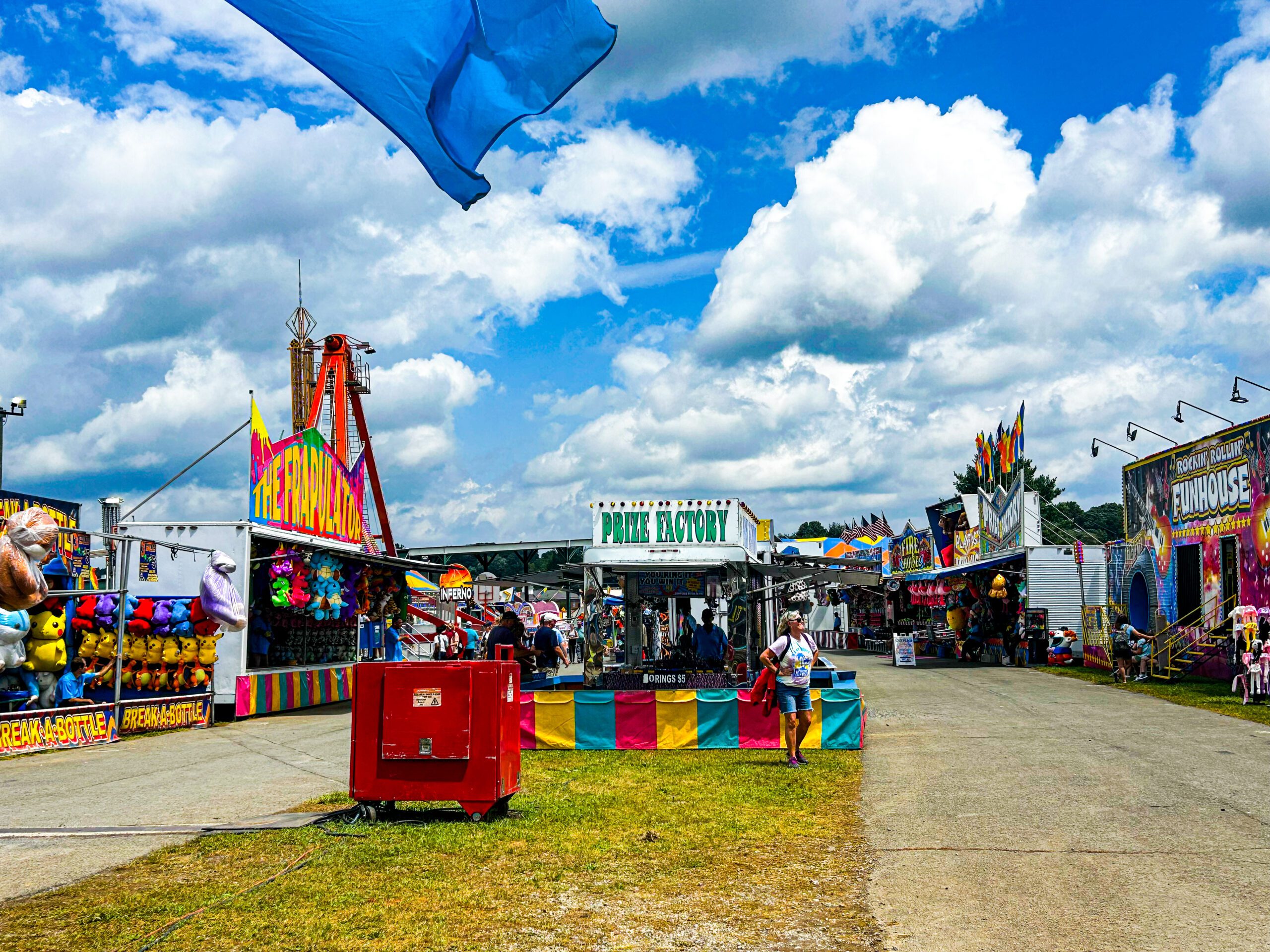 The gates open at 8:00 AM, and visitors can enjoy carnival rides starting at 11:00 AM, with the West Virginia Lottery booth opening at 12:00 PM.