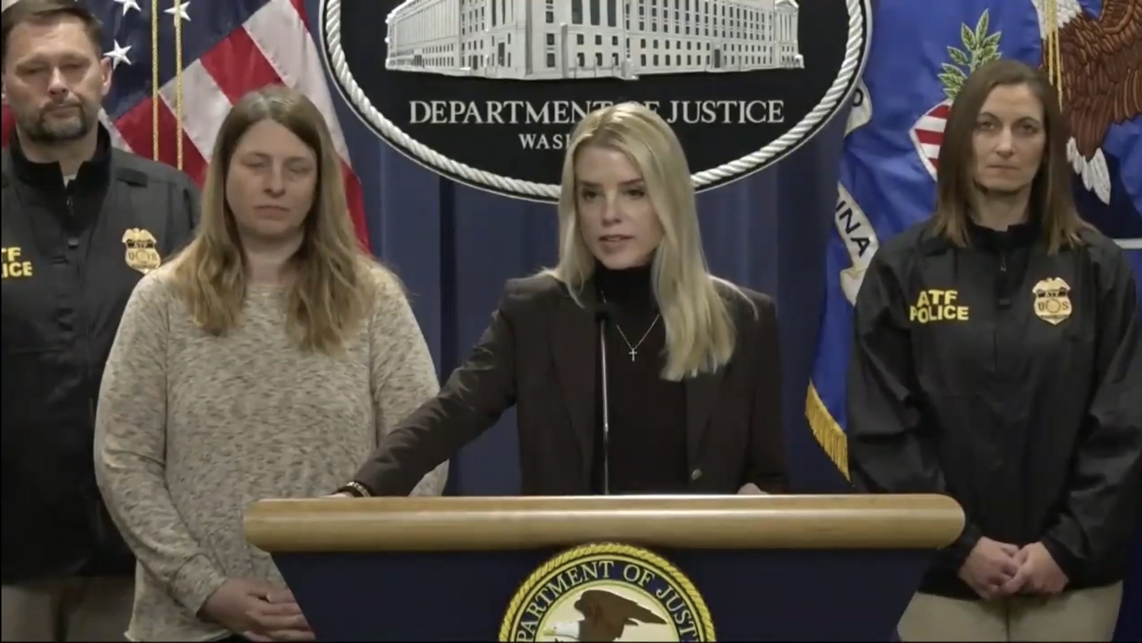 “Violent criminals, gang members, drug traffickers, human smugglers will no longer terrorize the American people, and that is why we are here today,” Bondi said.