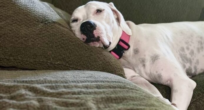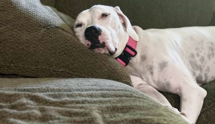 Lulu is known for her sweet and happy demeanor, and she loves people! She found her forever home years ago after being discovered and rescued on Route 19.