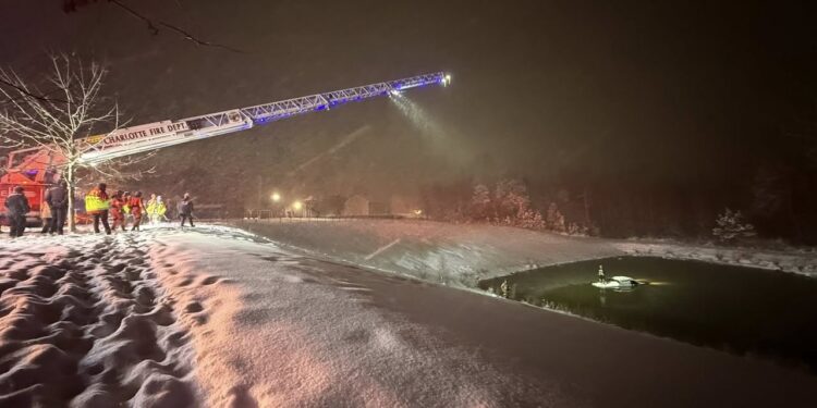 CHARLOTTE, NC (LOOTPRESS) – Charlotte Fire crews responded Saturday evening to a reported vehicle in the water at the intersection of Jerimoth Drive and Cuddington Drive.